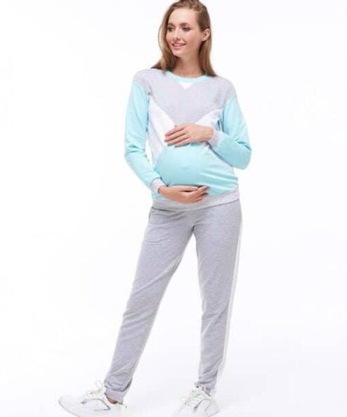 Ультрамодный костюм для беременных и кормящих в стиле sport chick из хлопкового трикотажа.