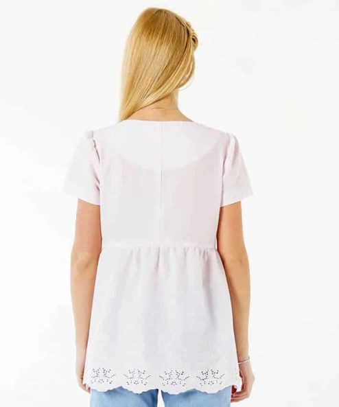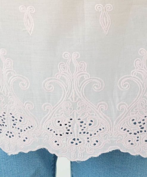 Отличительные черты этой блузки: натуральная ткань из хлопка, в такой блузе вам будет не жарко летом; оригинальная вышивка по нижнему краю, позволяющая создать романтичный образ.