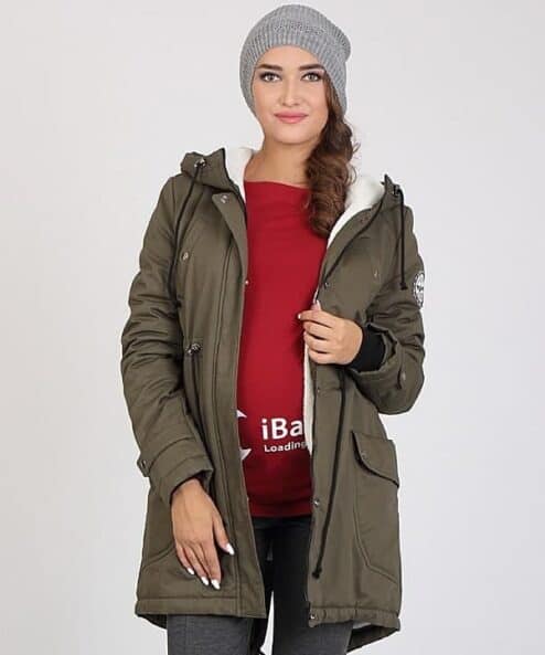 Оливковая теплая парка для беременных Inira