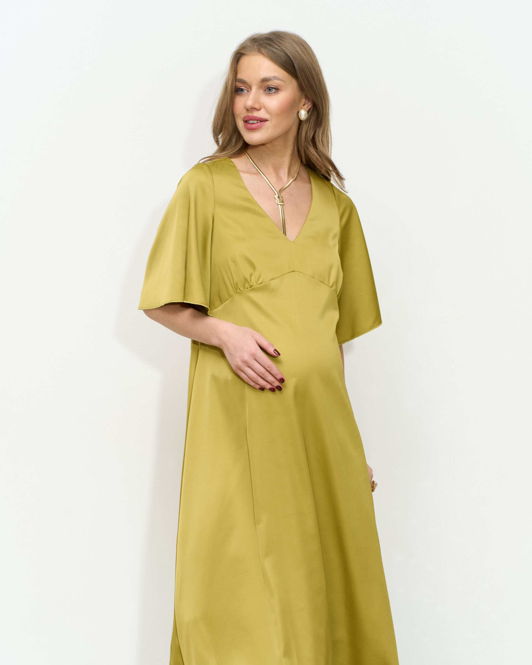 Оливковое атласное платье для будущих мам Malena