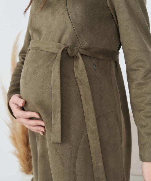 Замшевое платье цвета хаки для беременных и кормящих Ketty