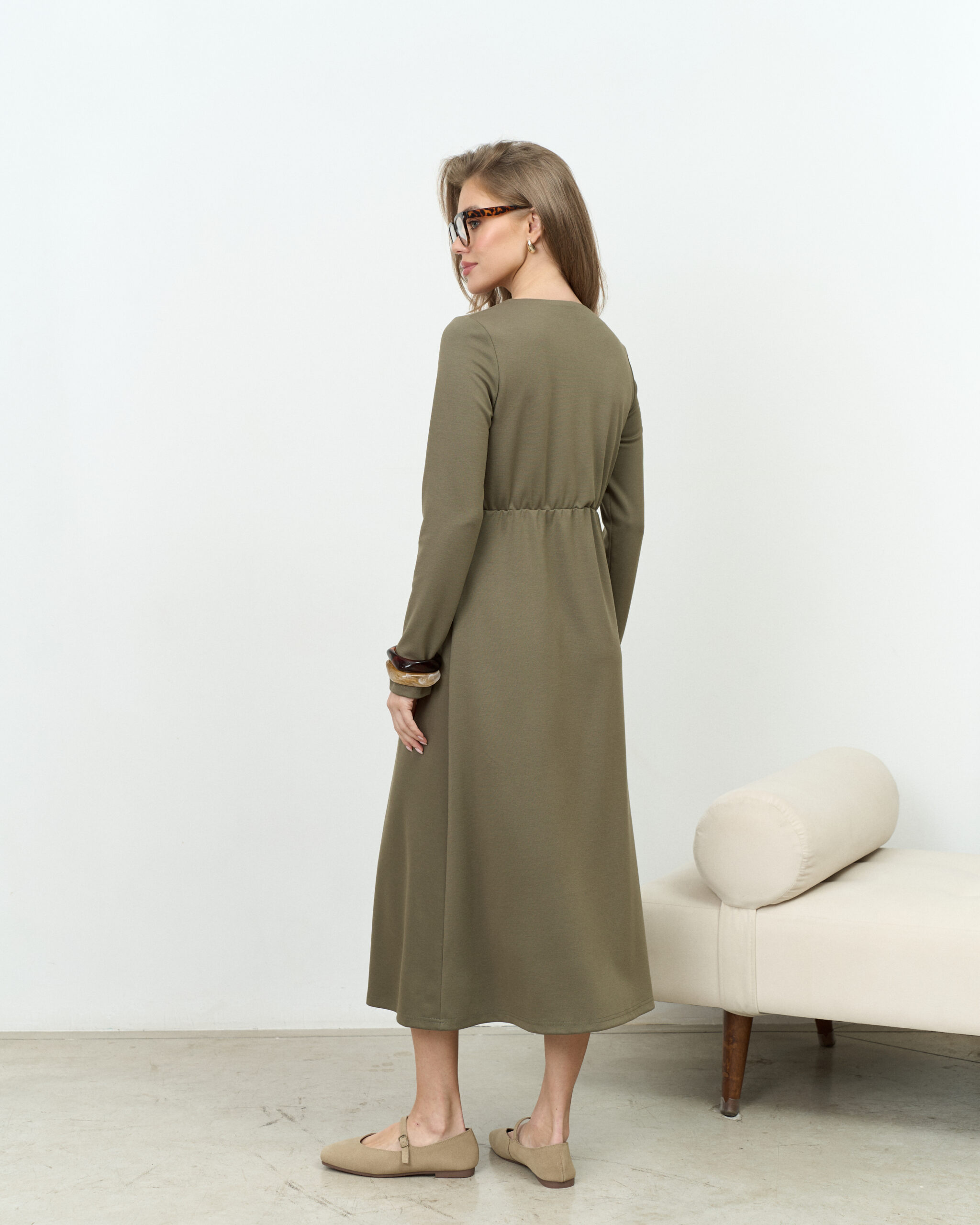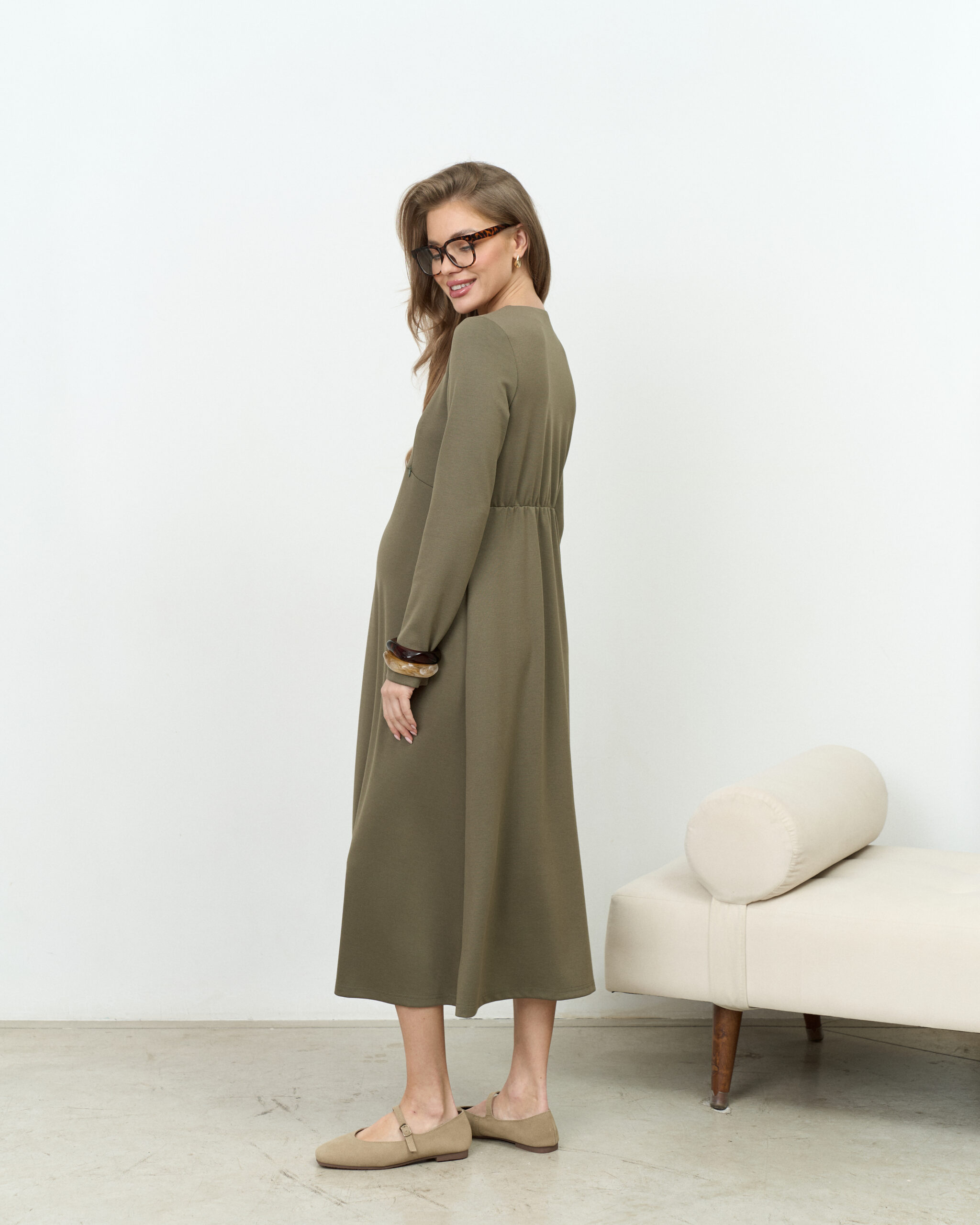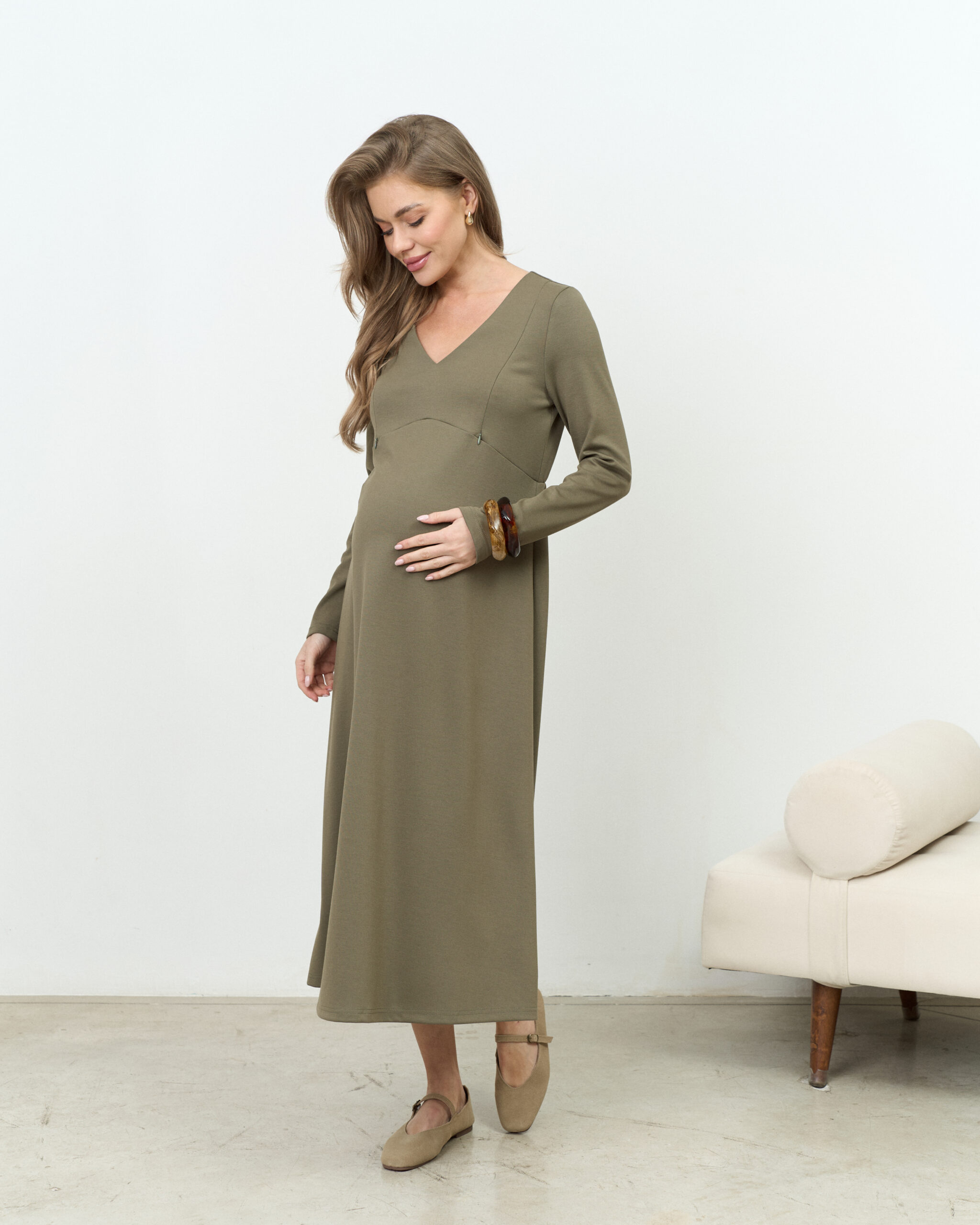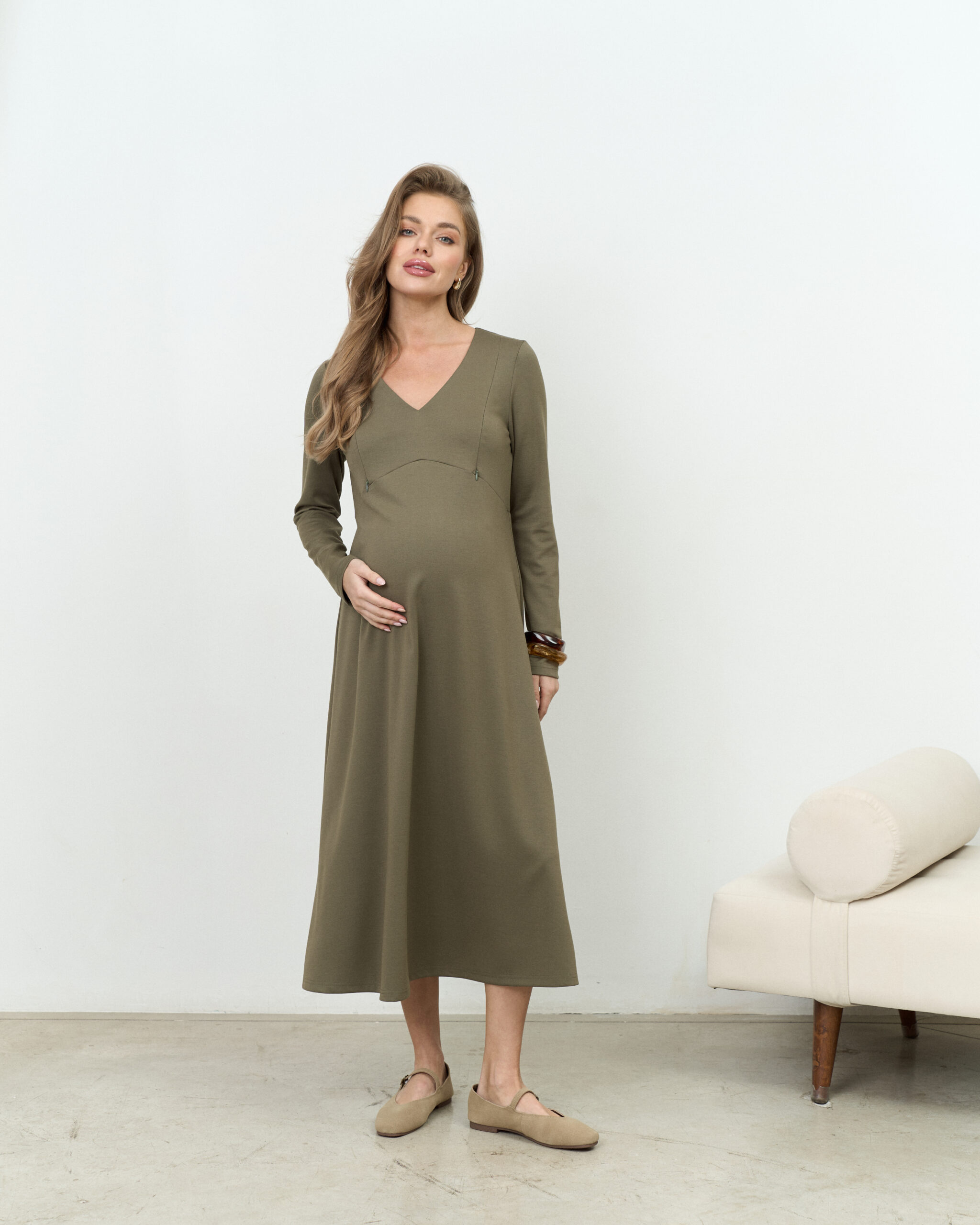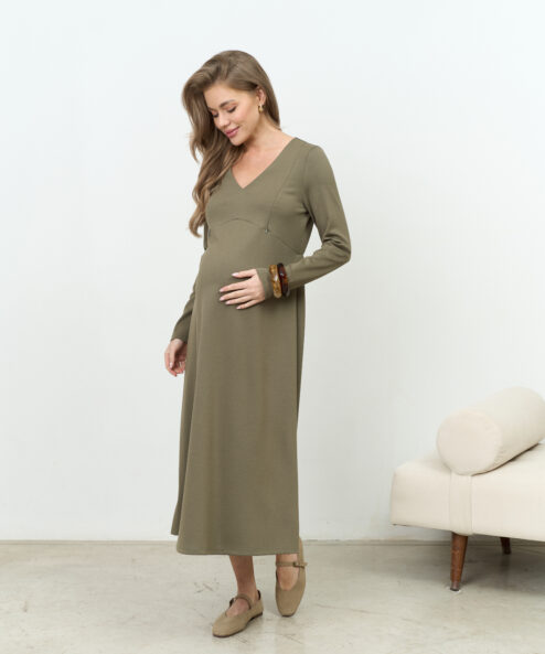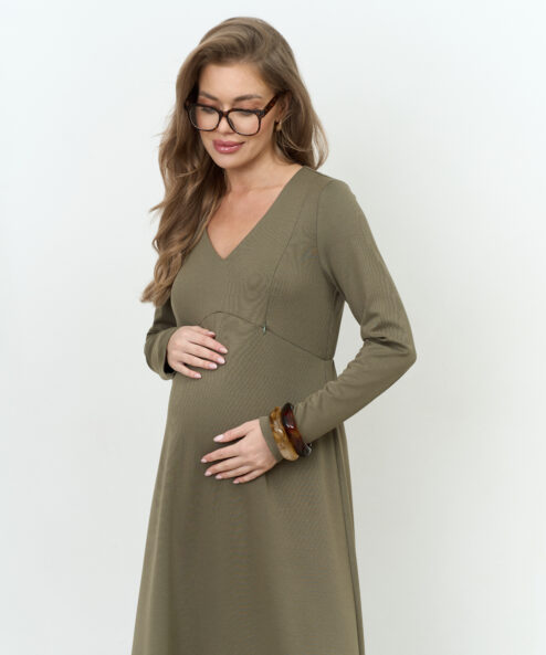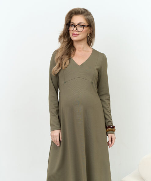 Оливковое платье для будущих и кормящих мам Azalia