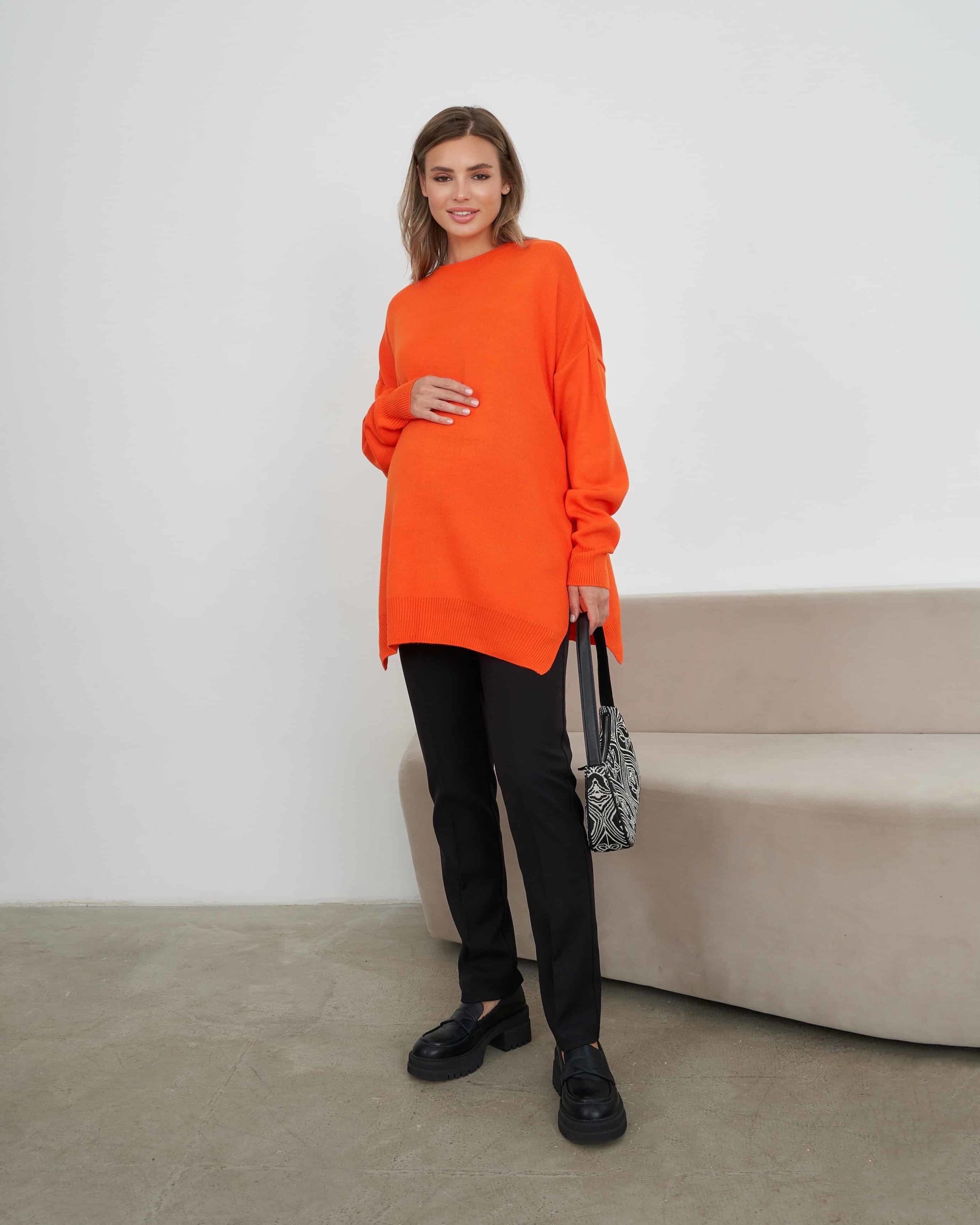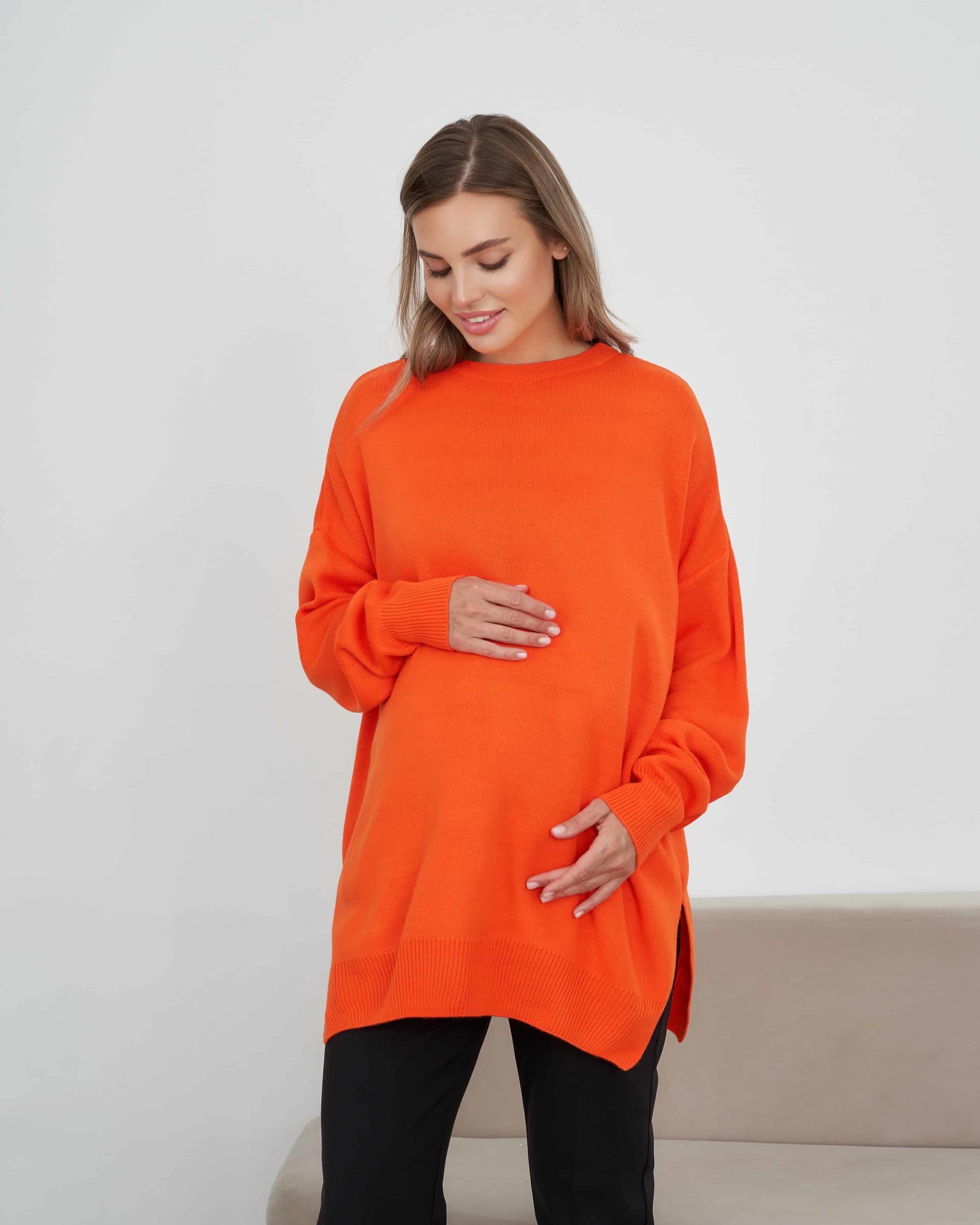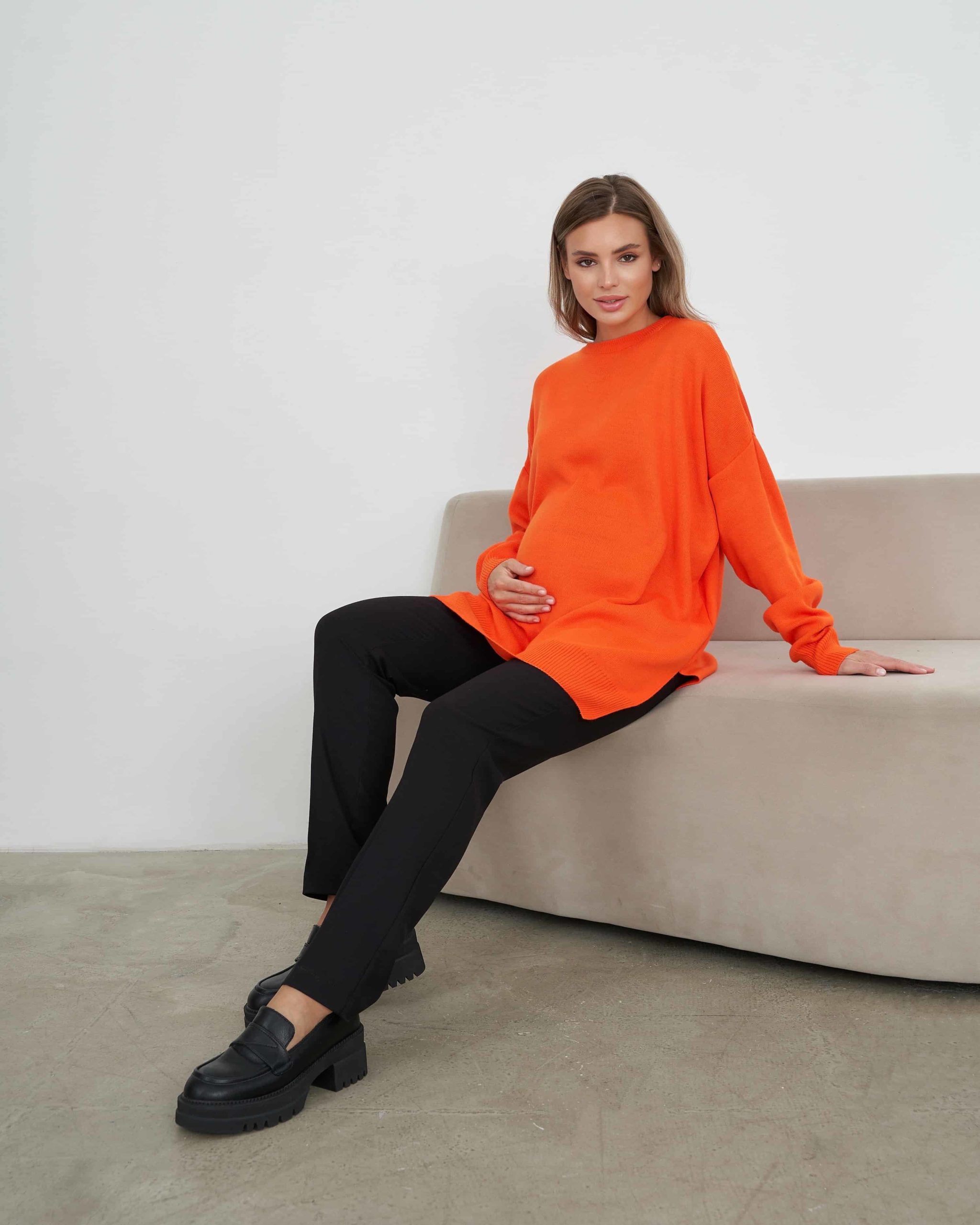 Этот стильный джемпер-оверсайз подойдет на весь период беременности и после. Состав пряжи премиального качества согреет вас зимой и подарит комфорт в межсезонье. А актуальный крой и фасон позволит создавать множество стильных городских образов.