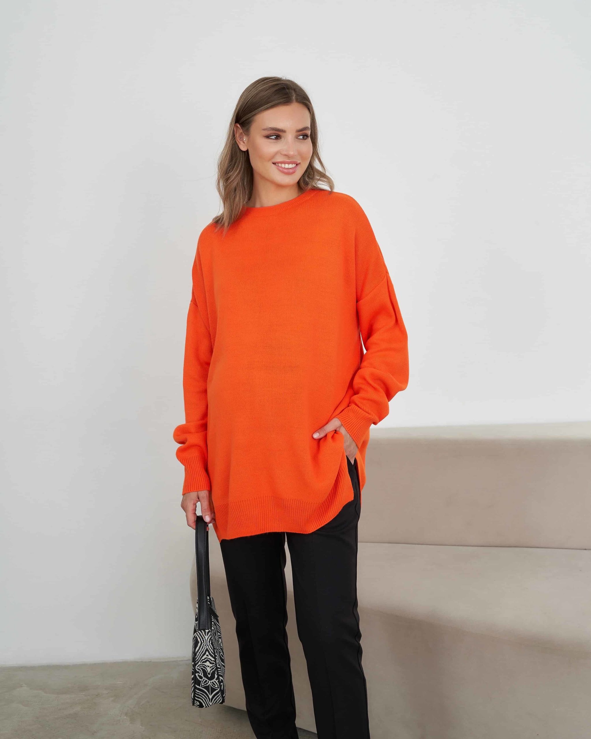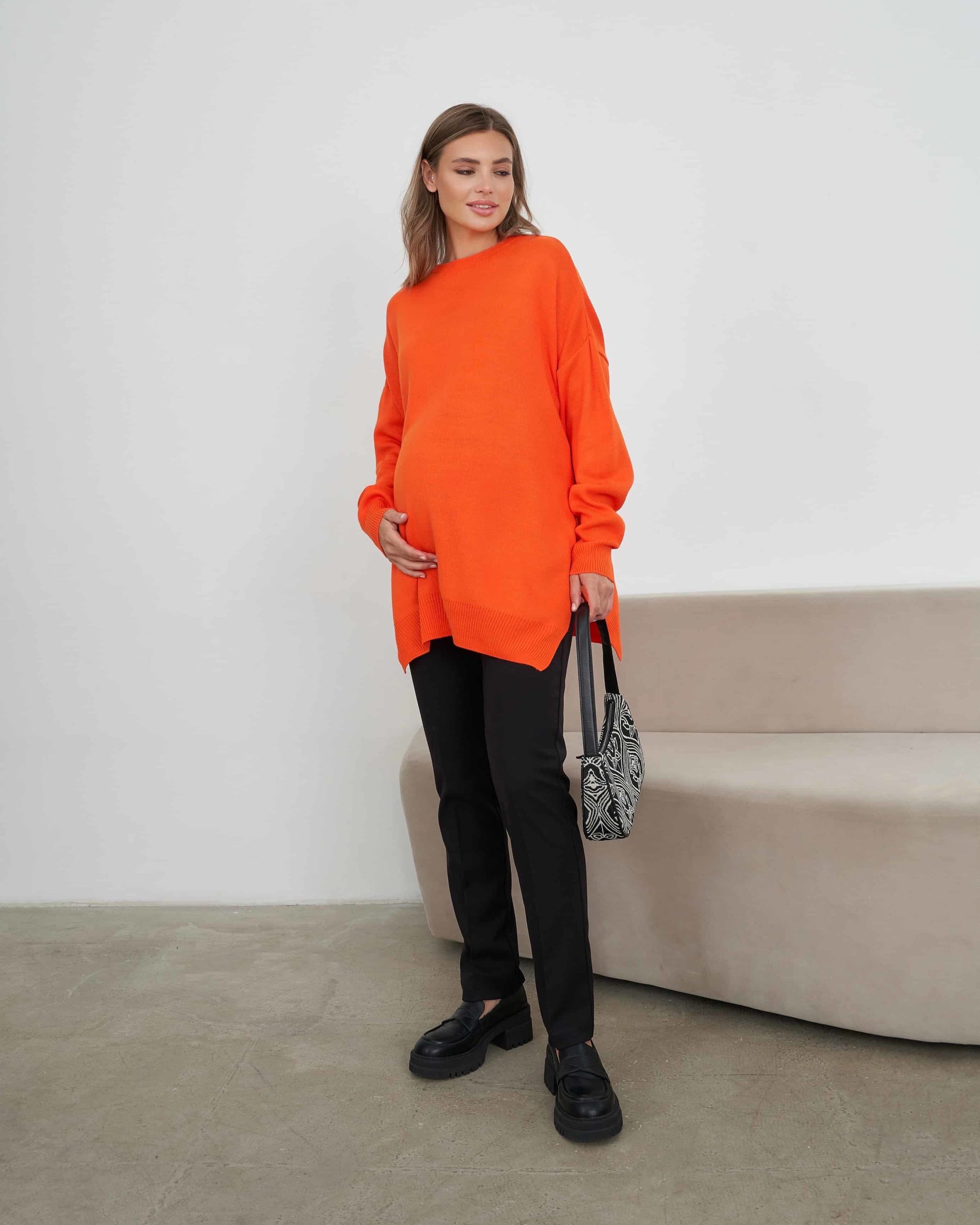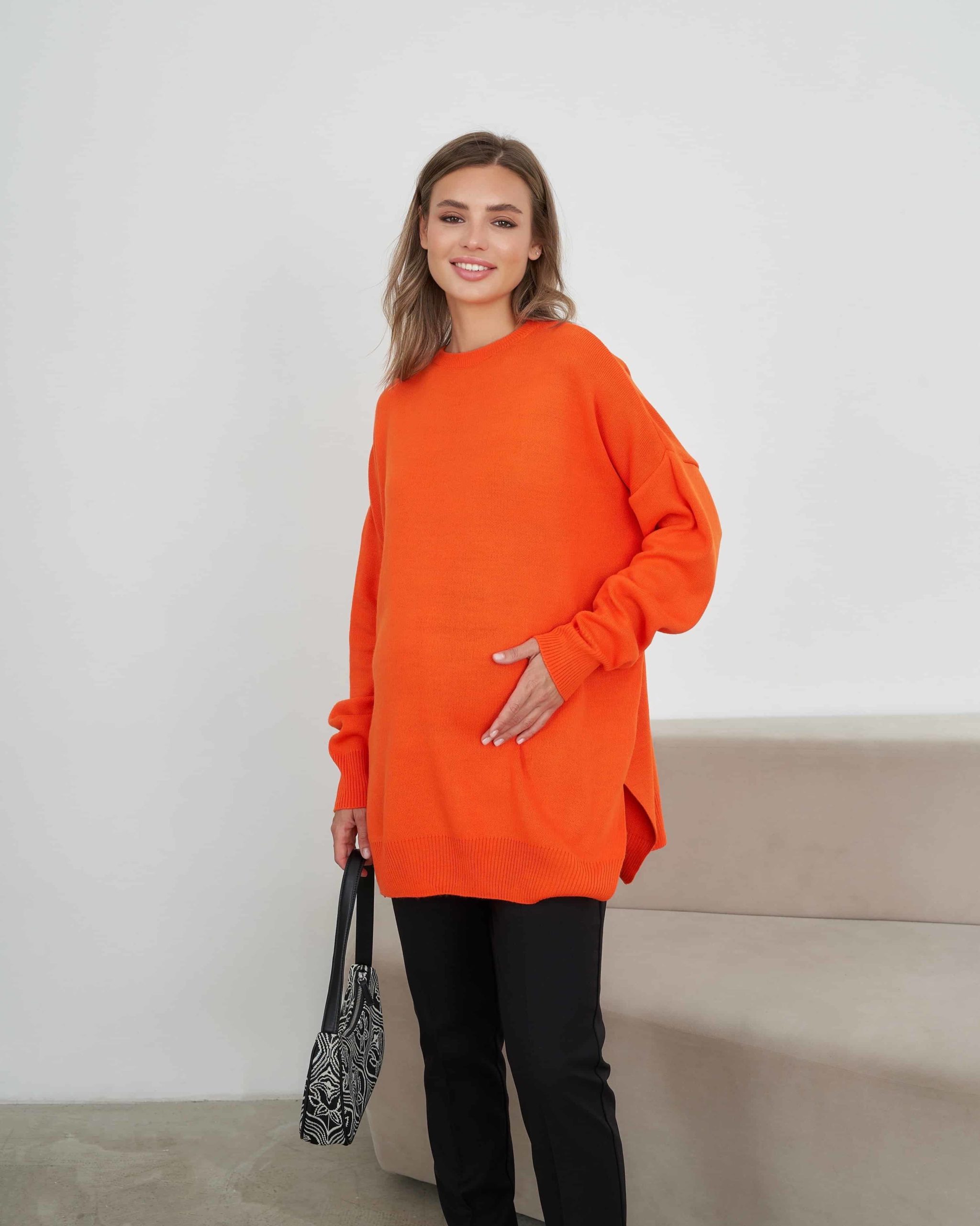 Этот стильный джемпер-оверсайз подойдет на весь период беременности и после. Состав пряжи премиального качества согреет вас зимой и подарит комфорт в межсезонье. А актуальный крой и фасон позволит создавать множество стильных городских образов.