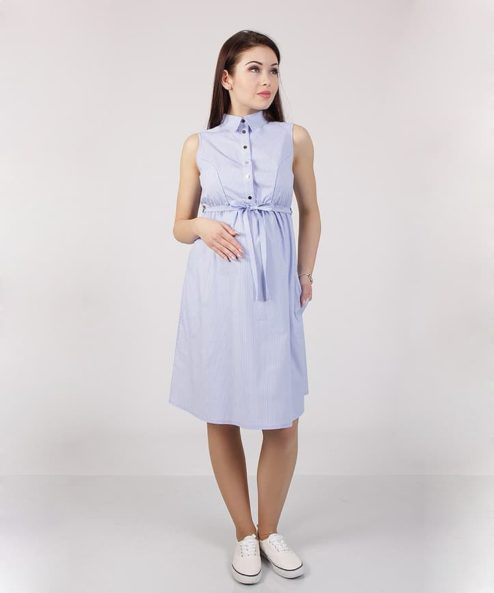 Вот уже несколько лет возглавляющее модный олимп платье-рубашка для беременных и кормящих из тонкого поплина в полоску. Лиф облегающий с рубашечным воротничком и планкой, эффектно украшенной металлической фурнитурой. В нагрудных рельефах спрятаны потойные молнии — наш маленький секрет для кормления. Свободный низ дает достаточно объема для изменяющихся форм и дарит прохладу в летнюю жару. Есть удобные карманы.