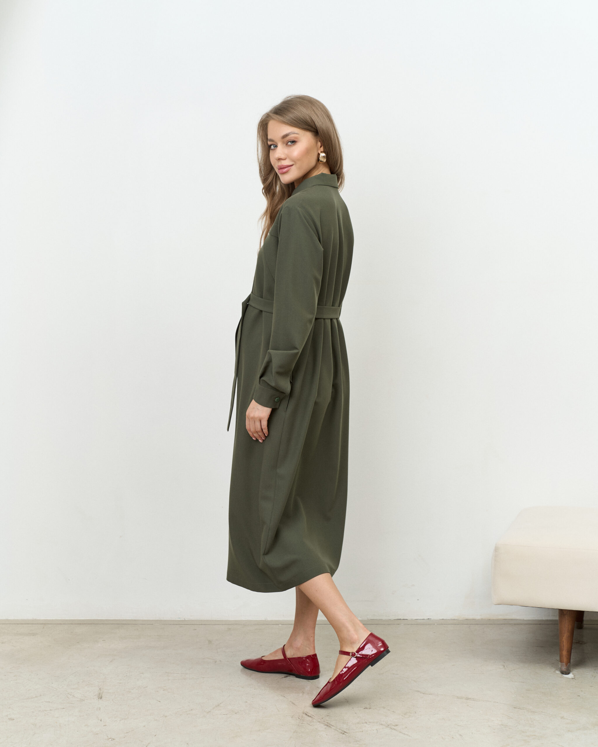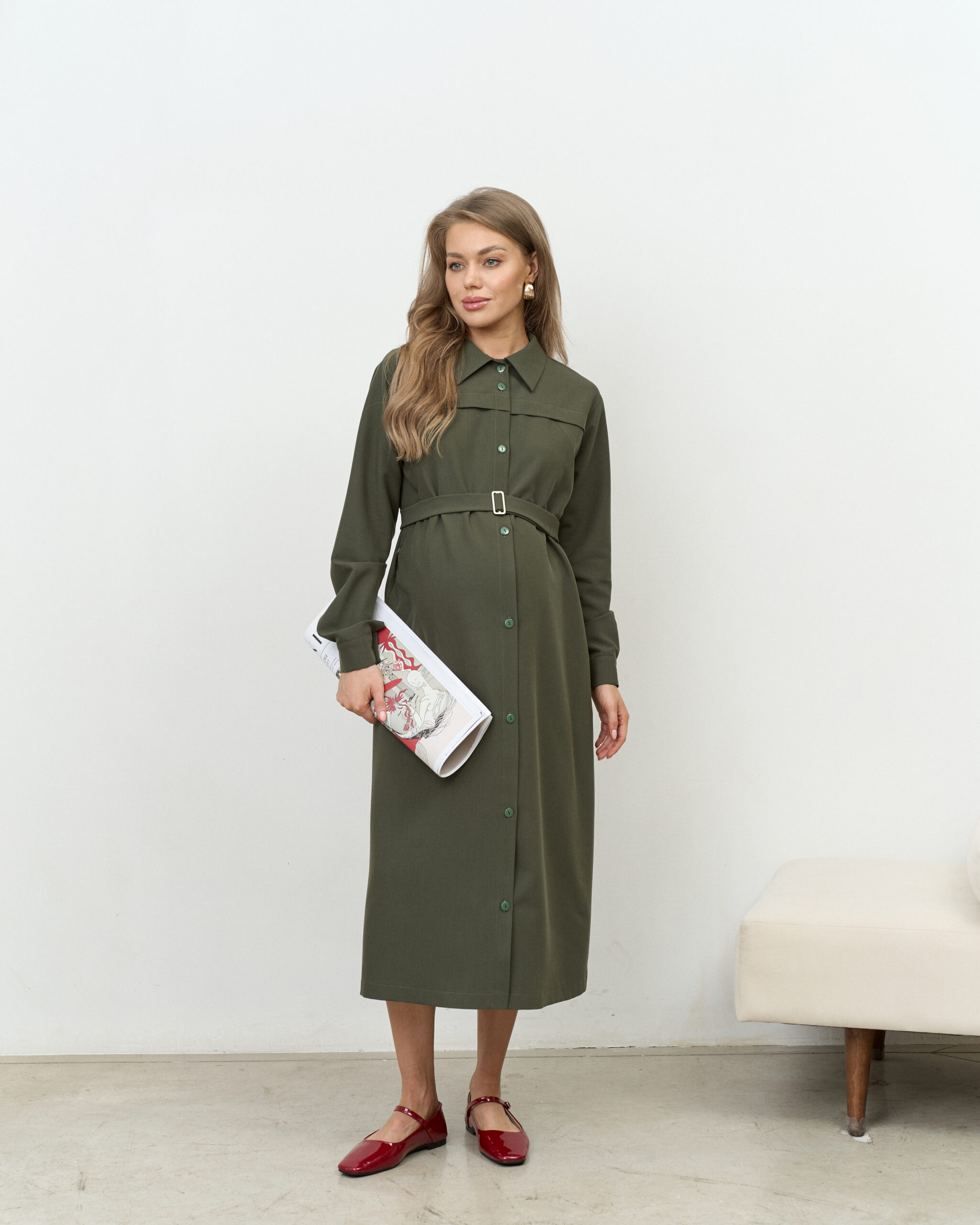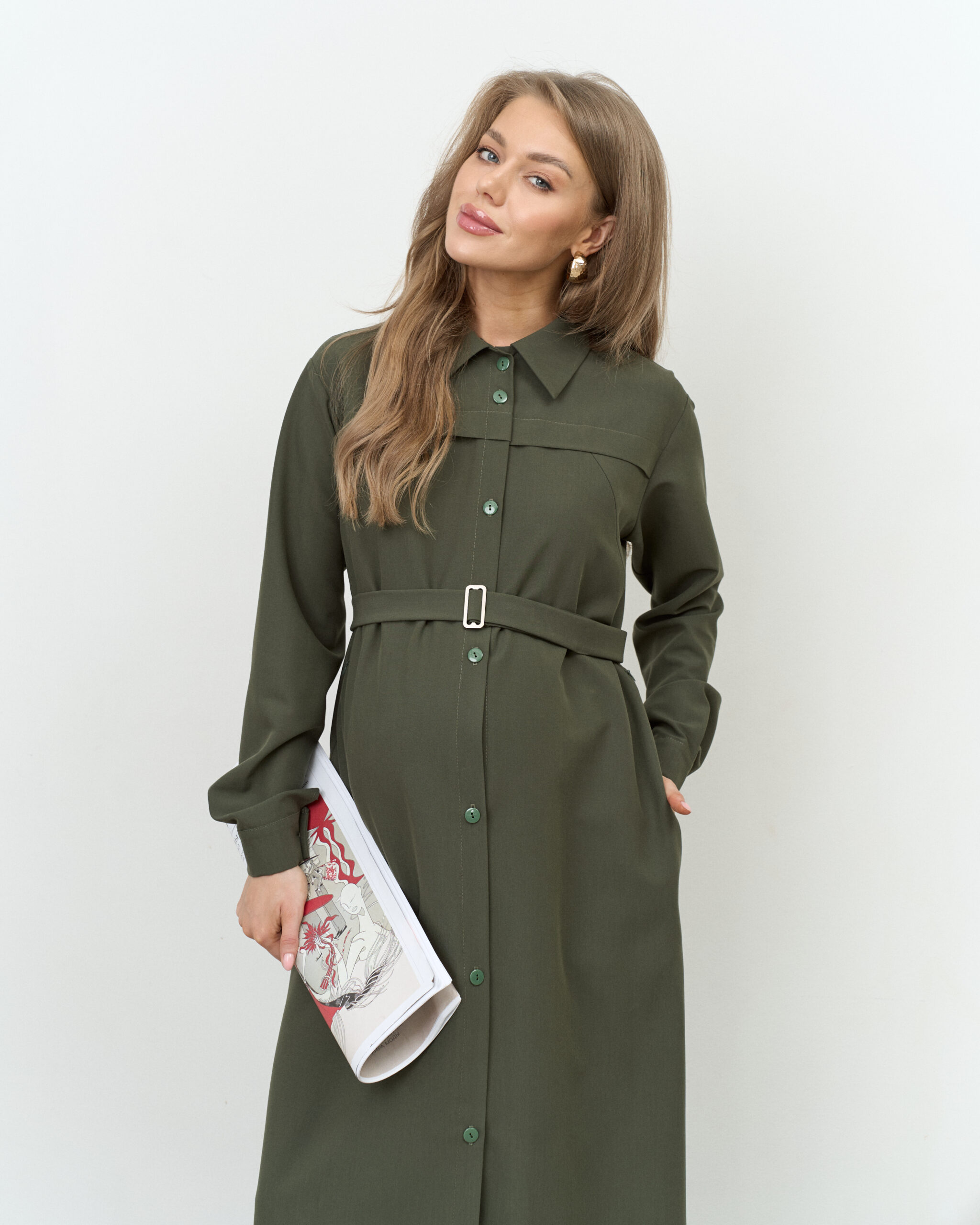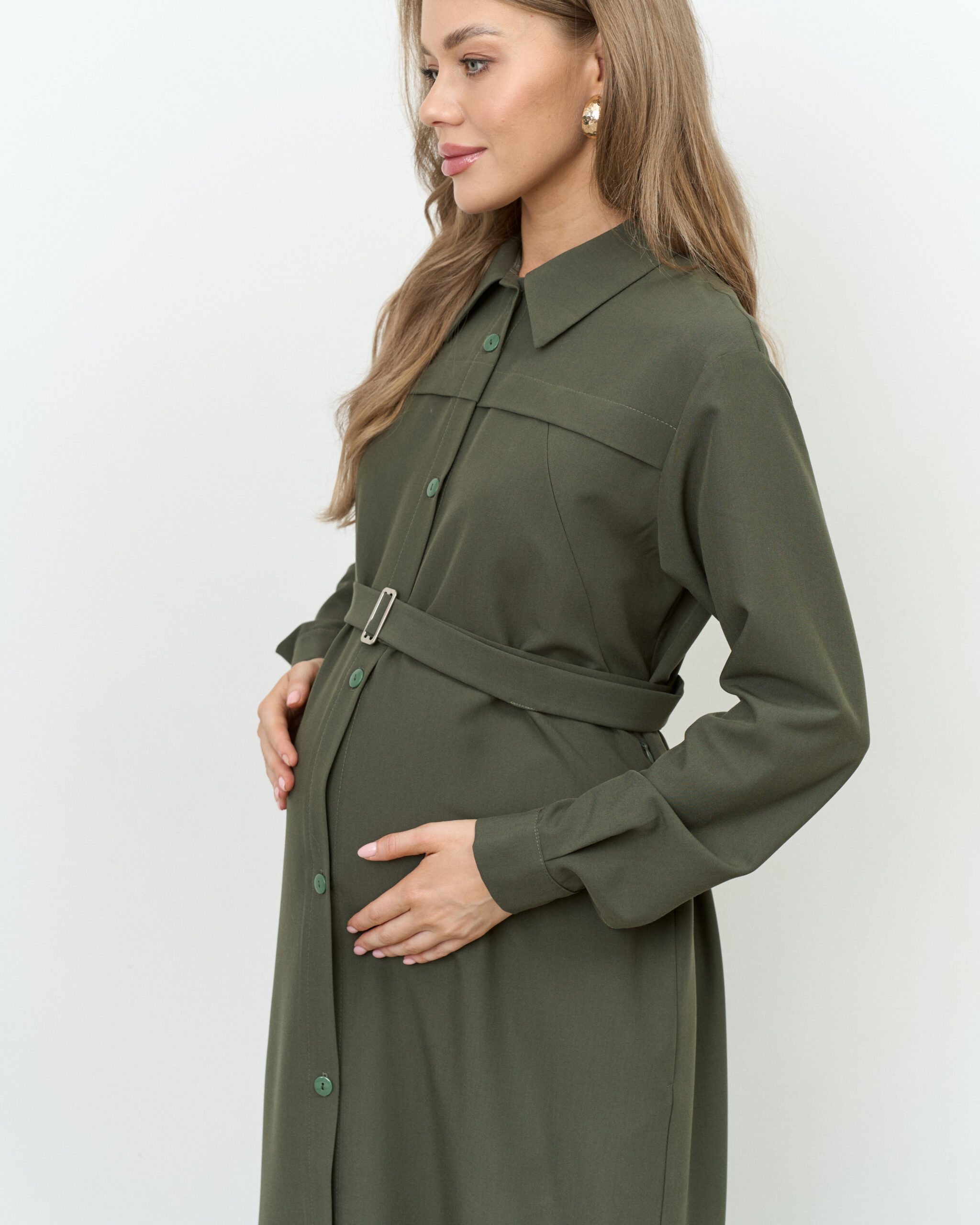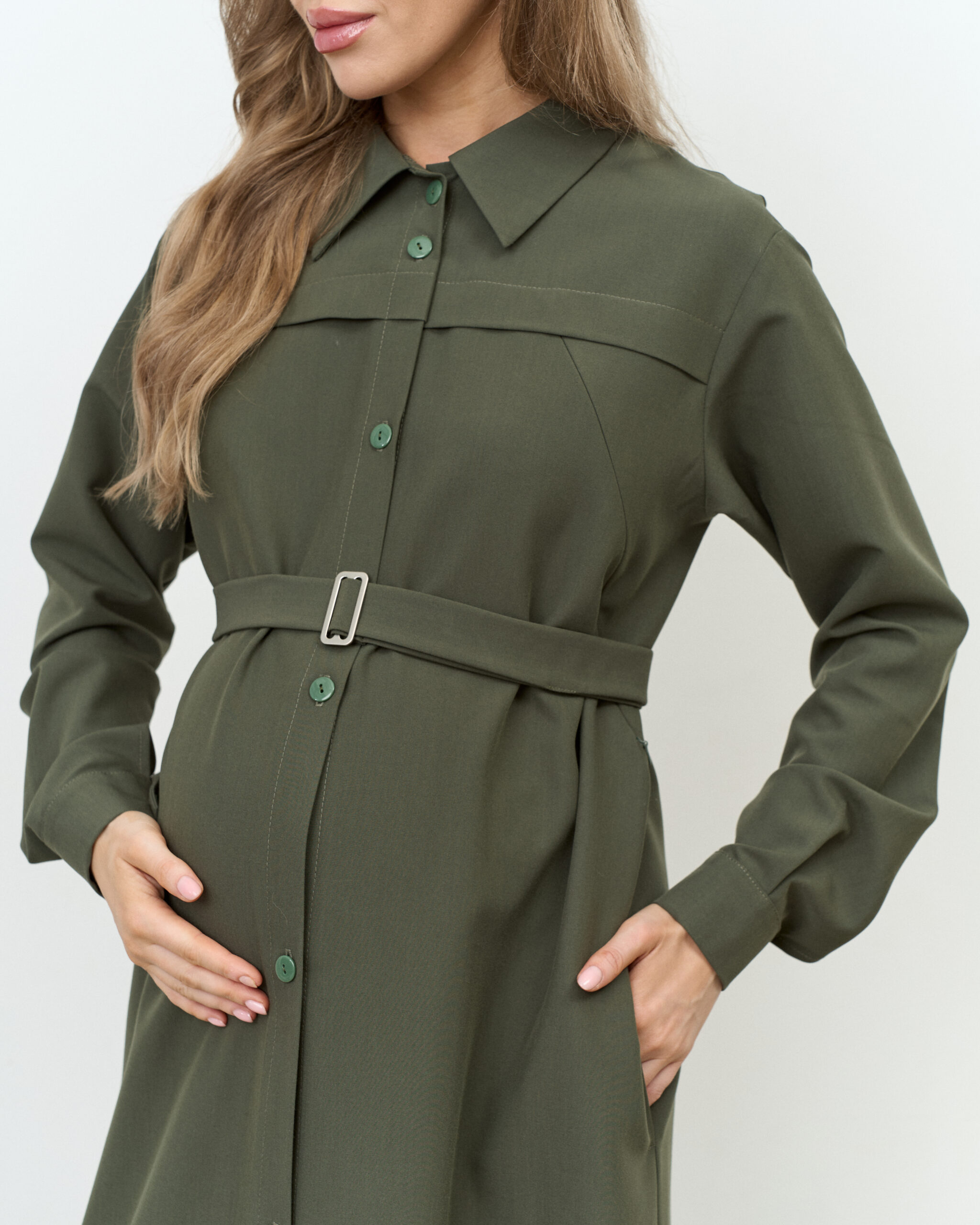 Платье-рубашка в цвете хаки для будущих и кормящих мам Shtefi