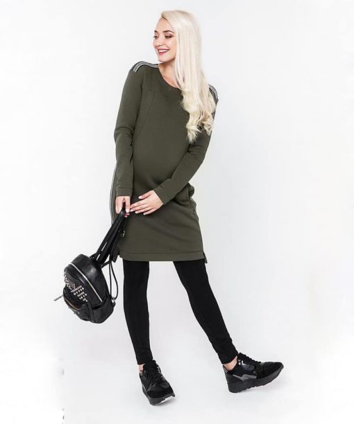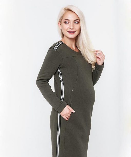 Теплое платье в цвете хаки для будущих и кормящих мам Danielle Warm