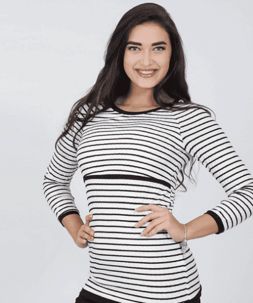 Белый полосатый лонгслив для беременных и кормящих мам Jael