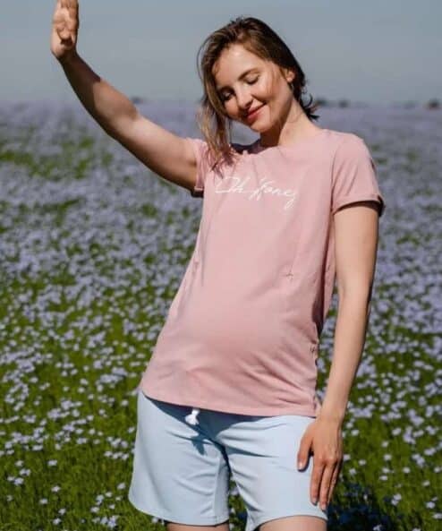 Пудровая футболка для будущих и кормящих мам Oh Honey