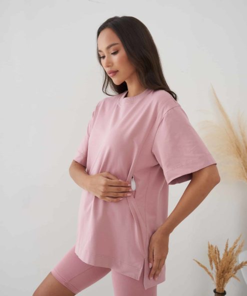 Пудровая футболка-оверсайз для будущих и кормящих мам Boyfriend
