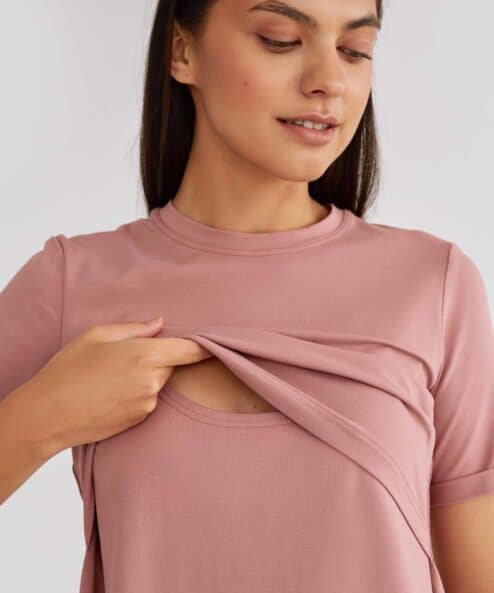 Пудровое платье-футболка для будущих и кормящих мам Casual
