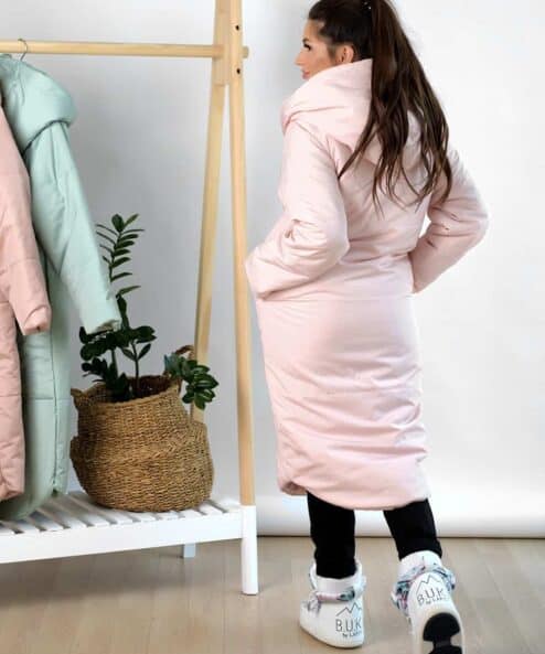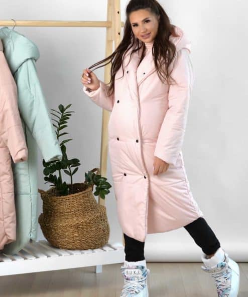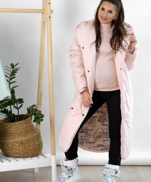 Пудровое зимнее пальто для беременных и кормящих Flambe