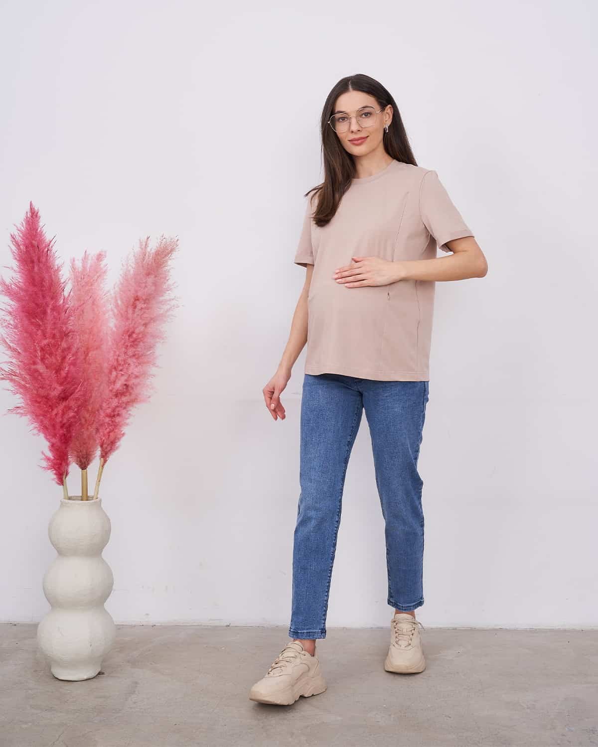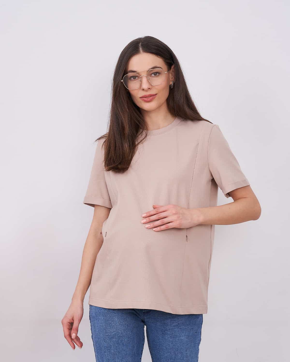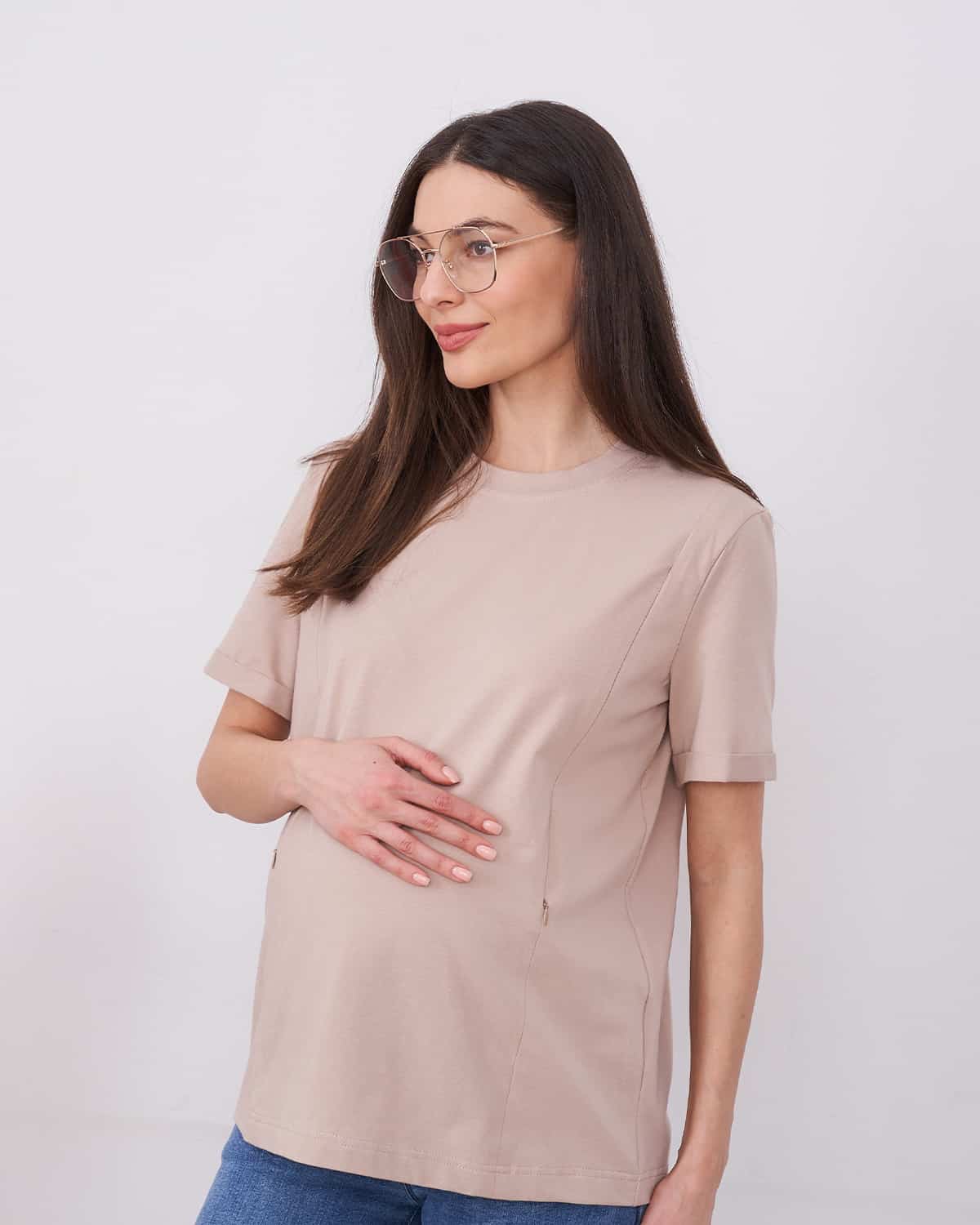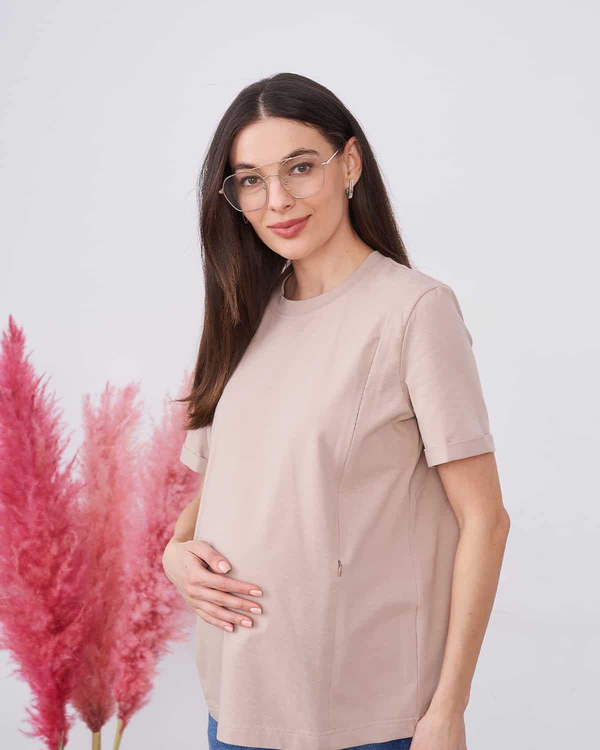 Пыльно-бежевая футболка для будущих и кормящих мам Astoria