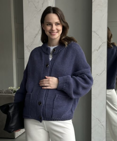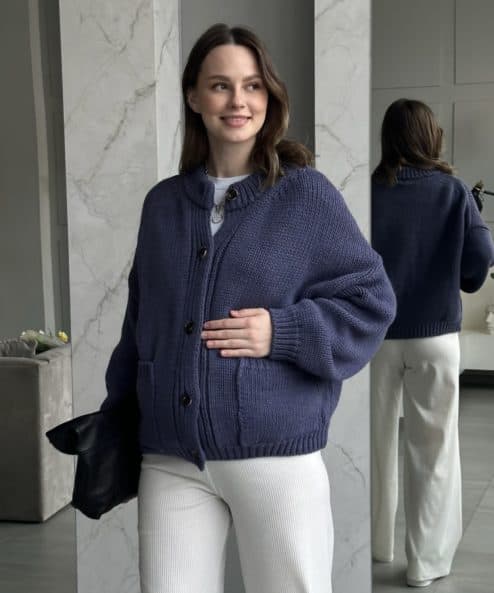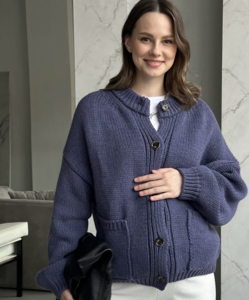 Пыльно-синий кардиган с карманами и пуговицами Nicole