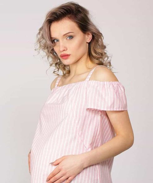 Розовая туника в полоску для беременных и кормящих мам Lucia