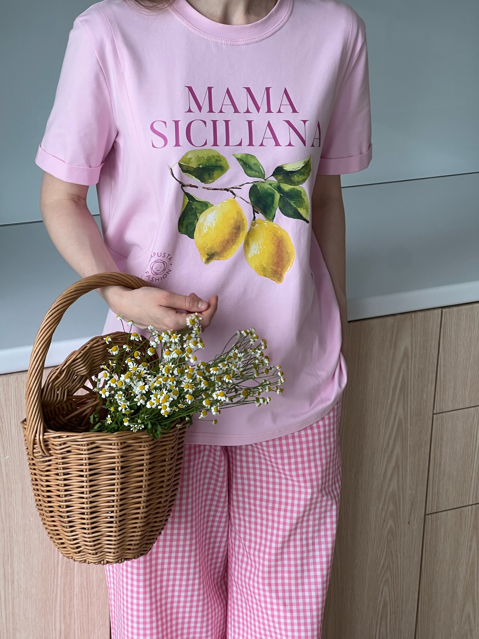 Розовая футболка для будущих и кормящих мам Mama Siciliana