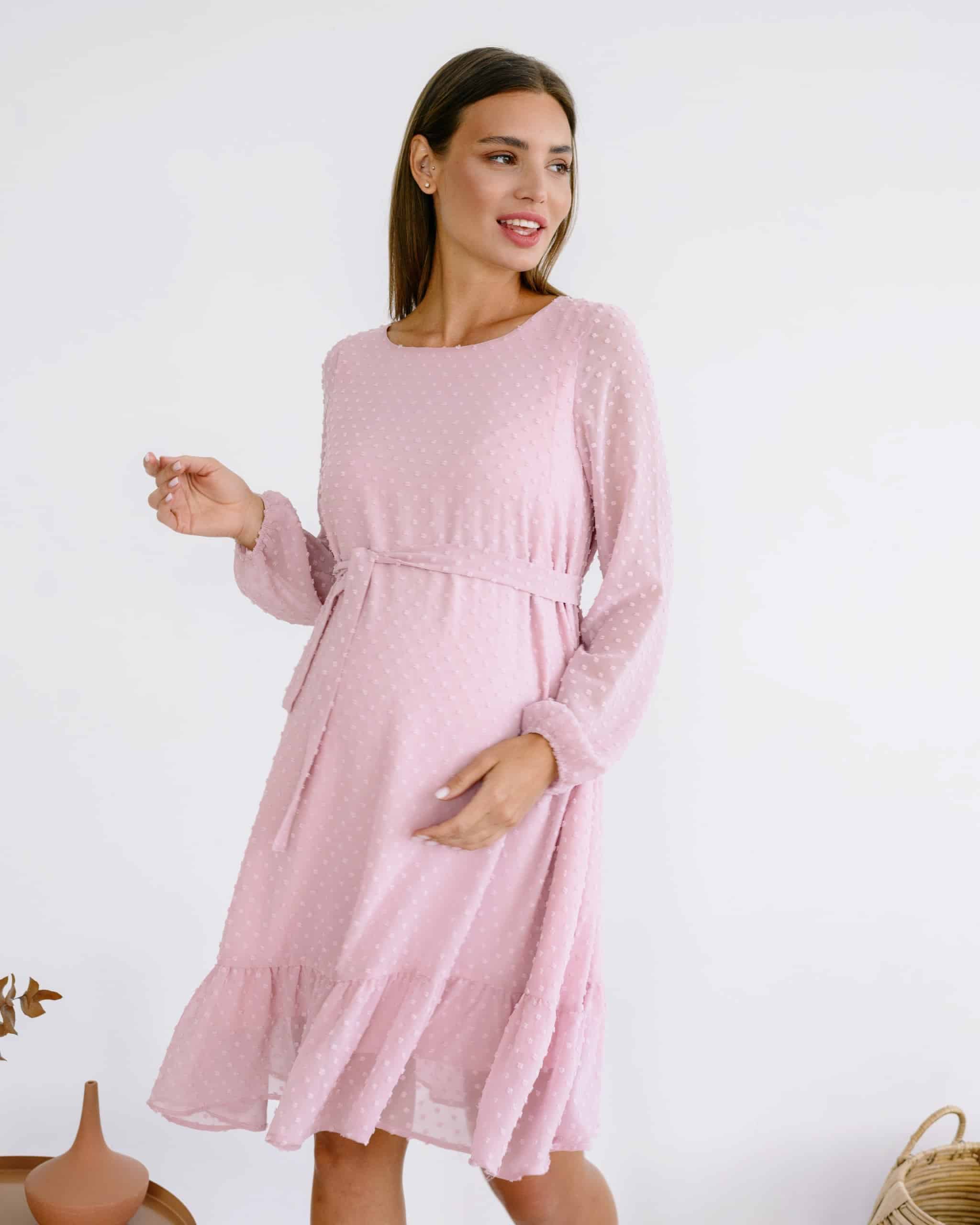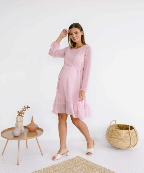 Пудровое воздушное платье для будущих и кормящих мам Bellini
