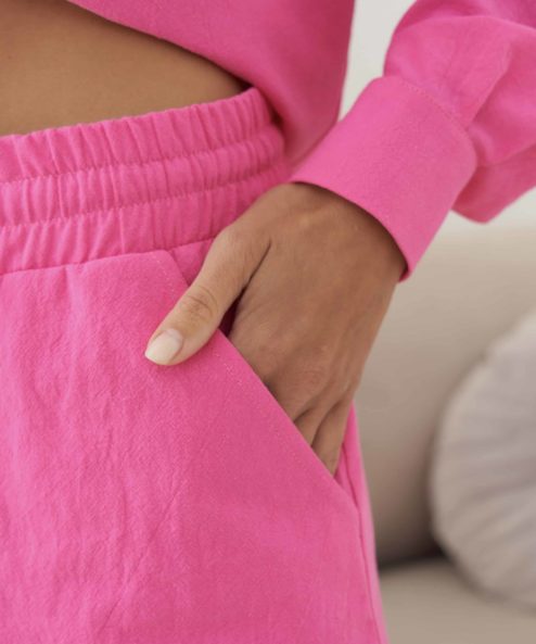 Лёгкие и очень удобные шорты прямого кроя, которые будут актуальны как для будущих, так и для уже состоявшихся мам. Модель изготовлена из приятного к телу хлопкового материала. Шорты имеют среднюю посадку, поясная резинка садится под животик, не стесняет и не передавливает его. В комплект к шортам вы можете приобрести Розовую рубашку Breeze