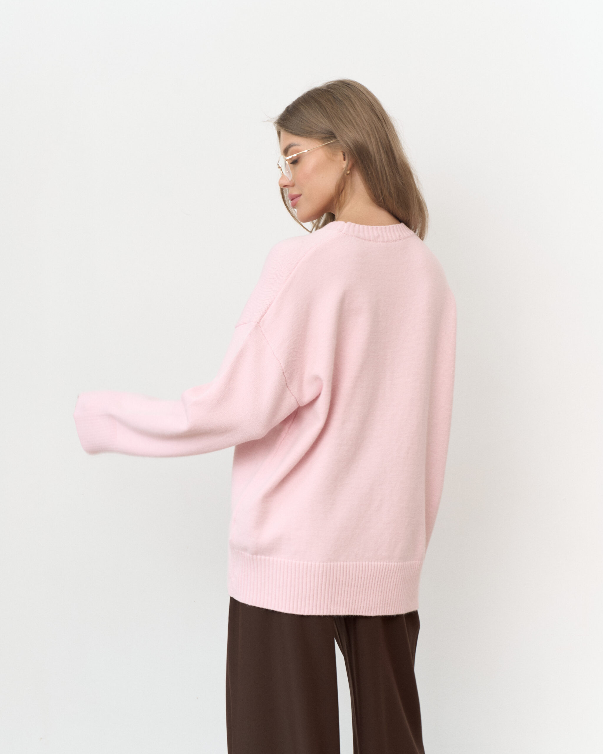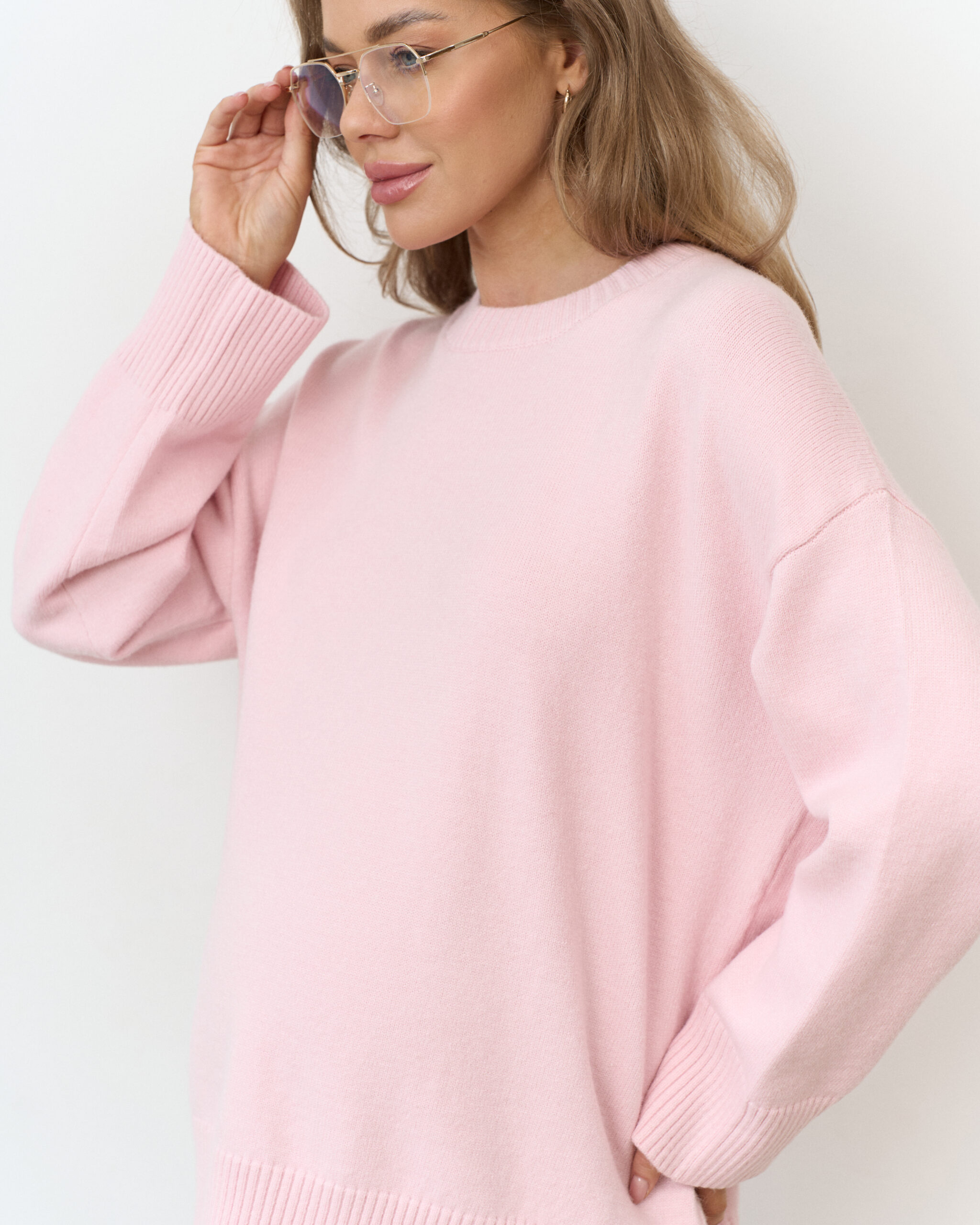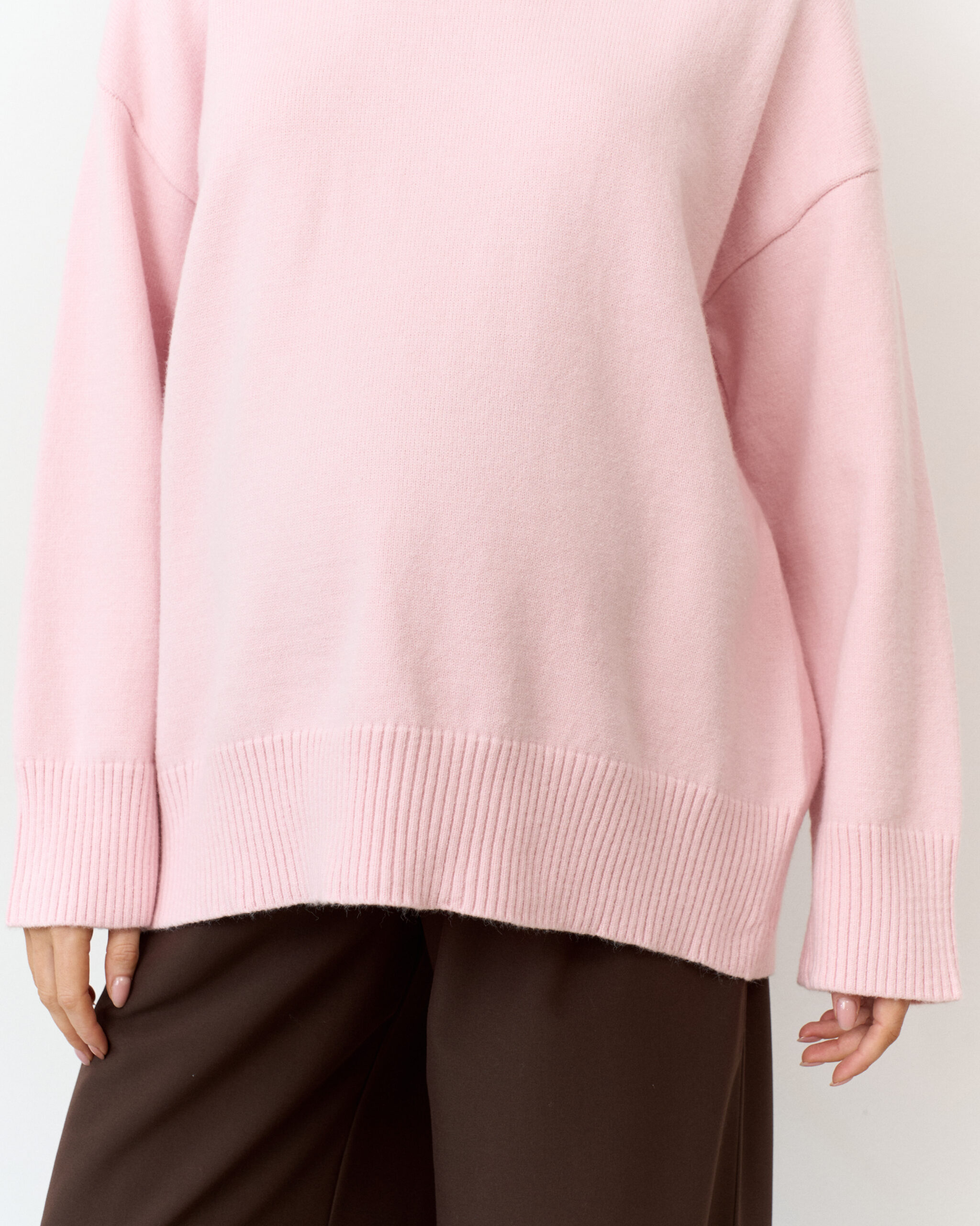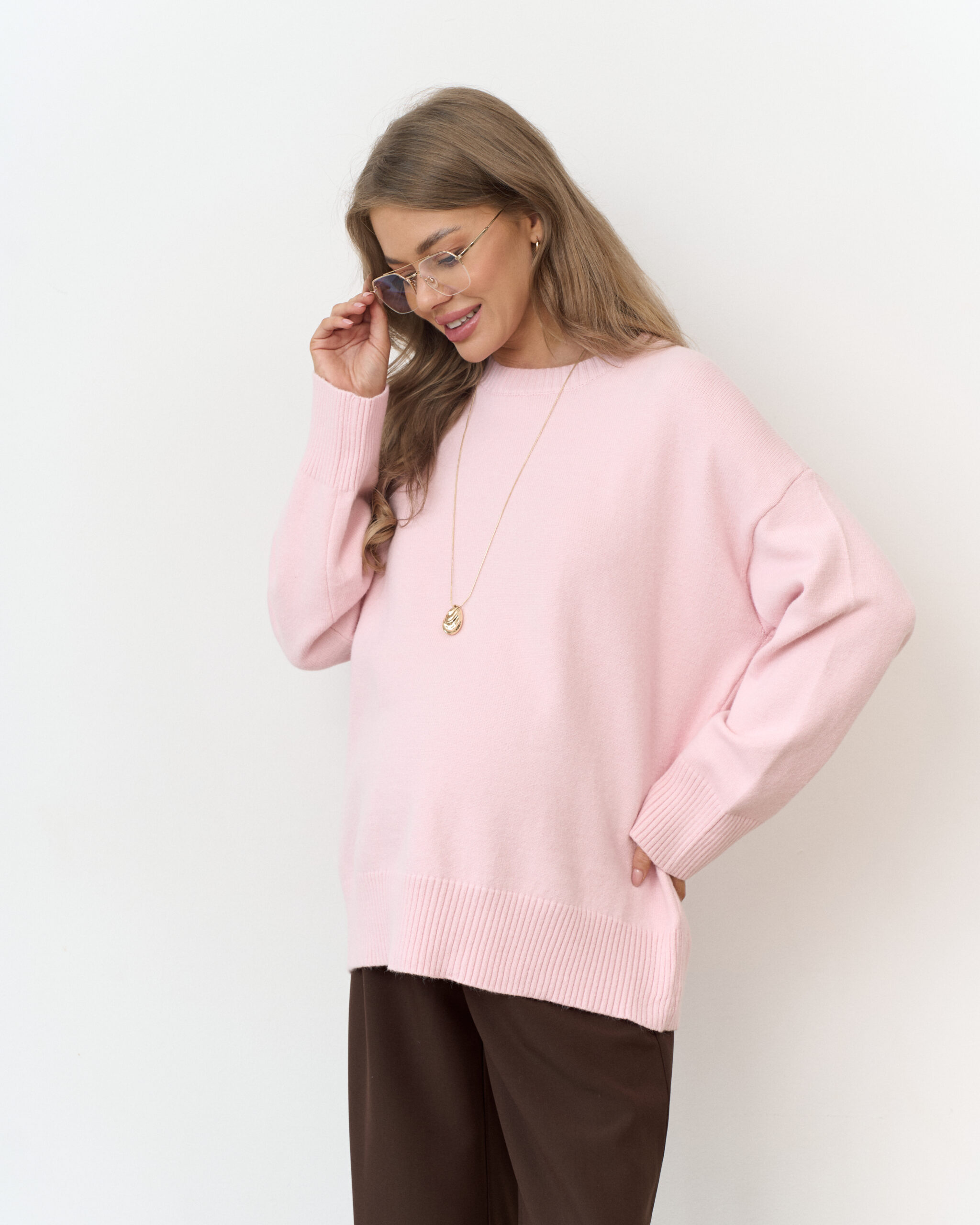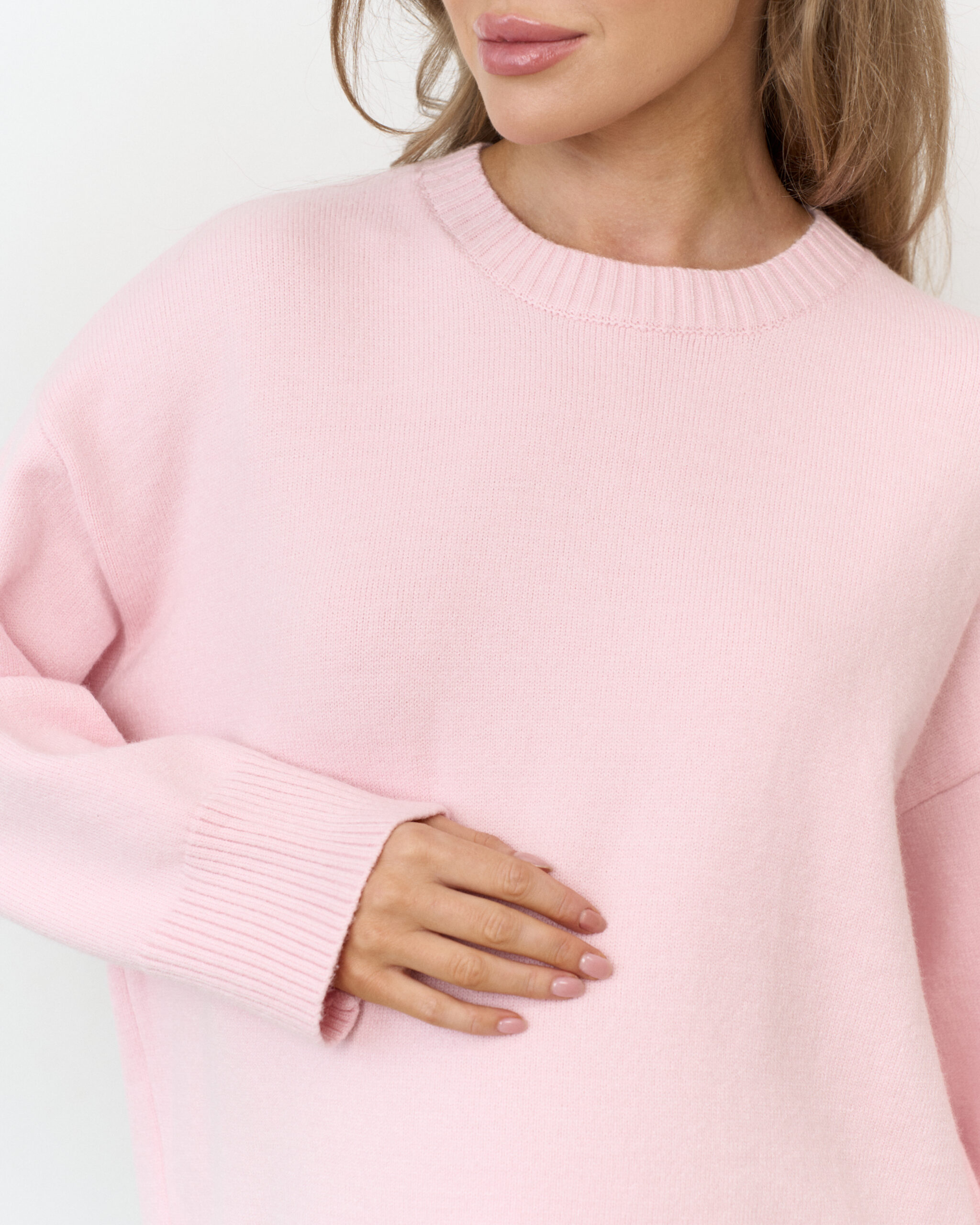 Удлиненный джемпер с круглой горловиной и спущенной линией плеч подойдет на любой срок беременности и после. Мягкая эластичная вязка и натуральный состав пряжи подарят комфорт в любое время года.