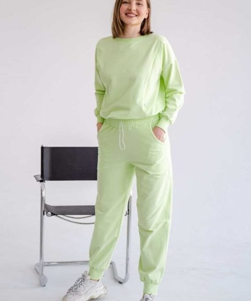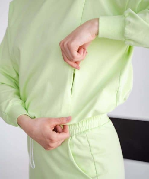 Стильный спортивный костюм свободного кроя для кормящих мам. Худи на завязке, позволяющей скорректировать силуэт, широкий рукав на эластичной манжете, в модели присутствуют две замаскированные в швах молнии для удобного кормления малыша. Брюки-джоггеры высокой посадки с эластичной вставкой на поясе, и двумя прорезными карманами. Благодаря своей универсальности, элементы костюма можно носить как в паре, так и по отдельности.