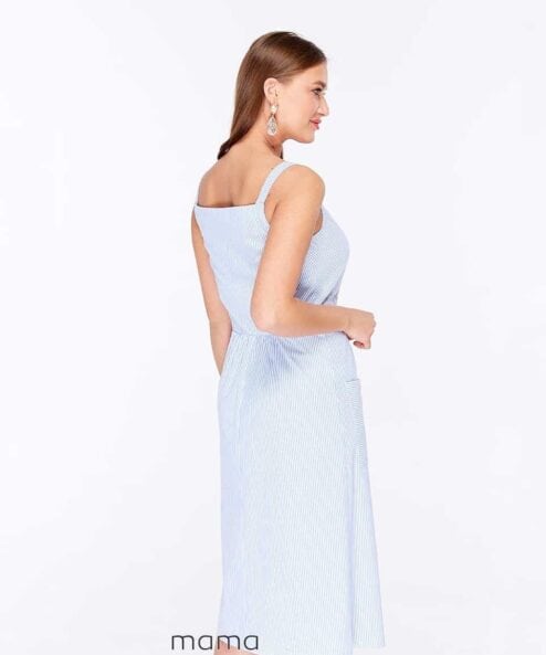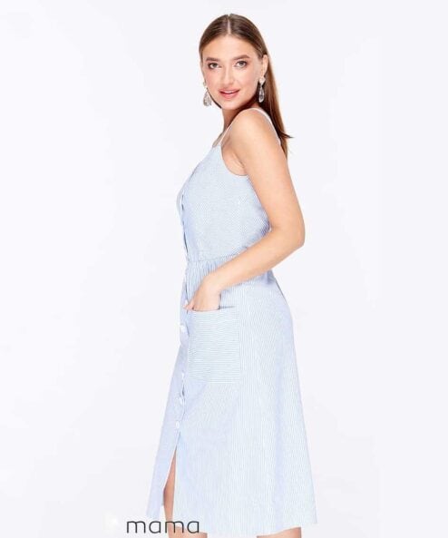Сарафан только для кормящих мам из стрейчевого поплина в полоску, длиной миди.