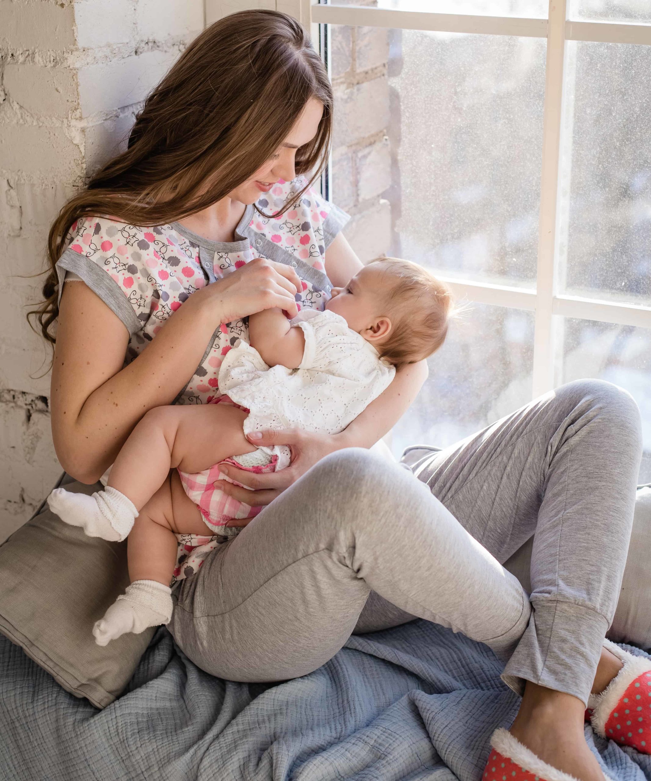 Верхняя часть пижамы имеет секрет кормления в виде 2-х расстегивающихся планок на кнопочках.