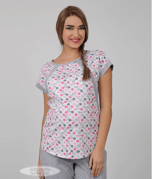 Серая пижама для беременных и кормящих мам Relax в горошек