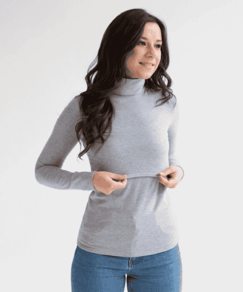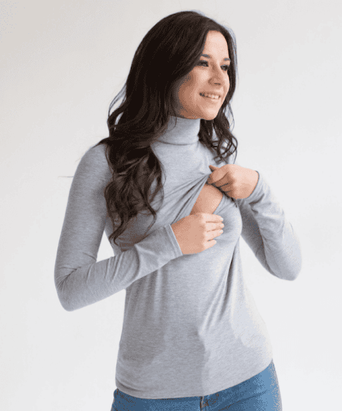 Базовая водолазка неотъемлемый элемент гардероба беременных и кормящих мам. Функциональный секрет — двойная полочка, позволит незаметно покормить малыша в любом месте. А благодаря удлиненному крою, можно носить всю беременность. Подойдет для активного отдыха и будет отлично смотреться в романтичном образе с юбкой.