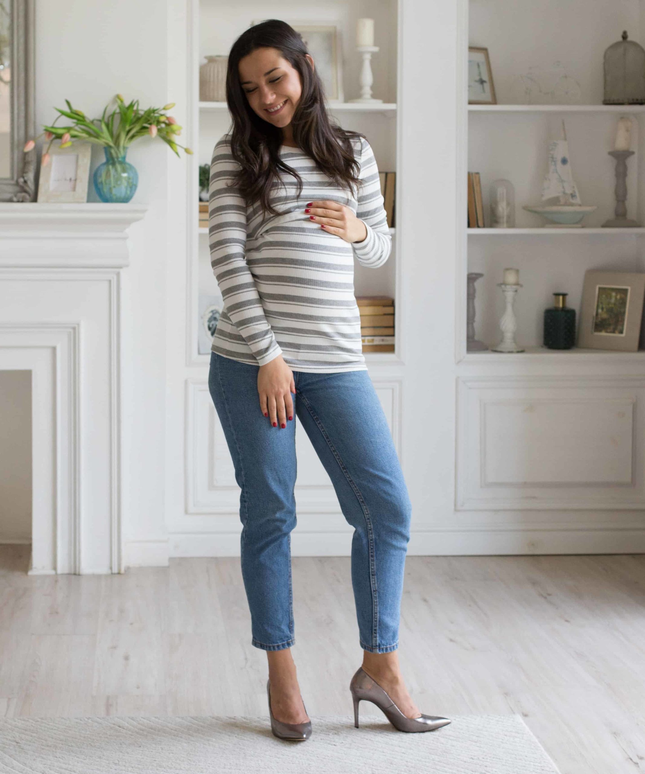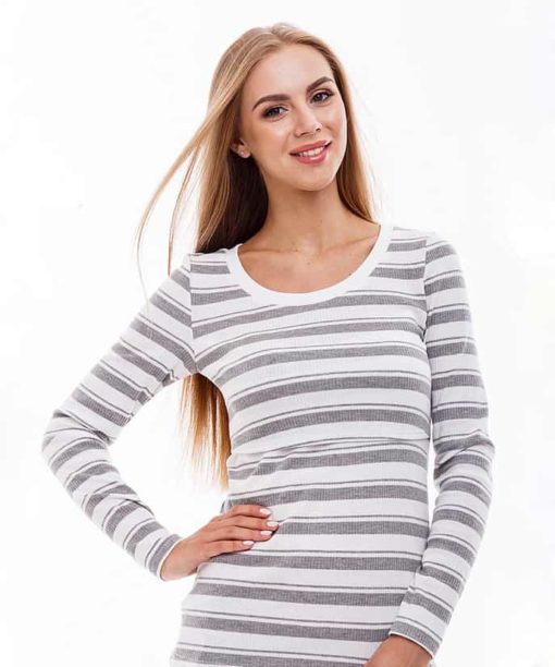 Милый лонгслив для кормления из стрейчевого трикотажа в полоску. Удобный и стильный, он станет любимой вещью в вашем повседневном гардеробе во время беременности и после. Секрет для ГВ — без молний, верхняя деталь полочки заходит на нижнюю деталь. Мягкий трикотаж-лапша обеспечит полное прилегание к фигуре и не будет сдавливать ваш растущий животик.