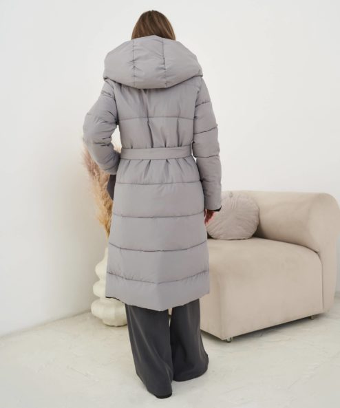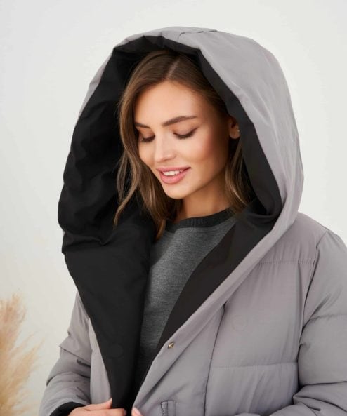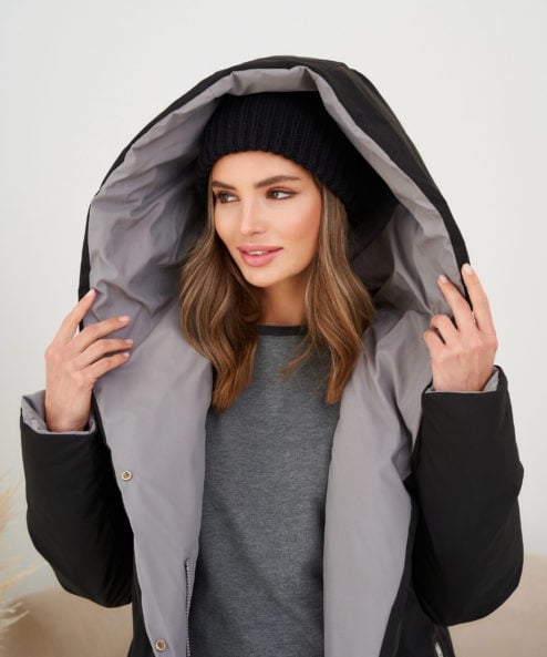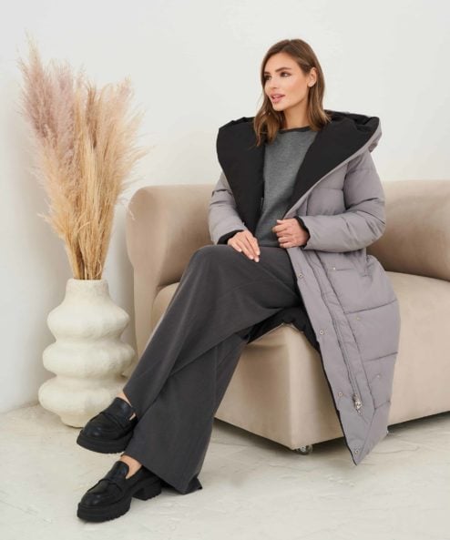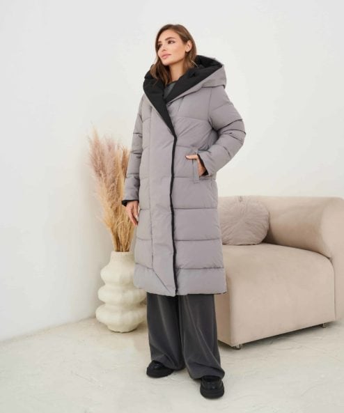 Серо-черное двухстороннее зимнее пальто Kleo