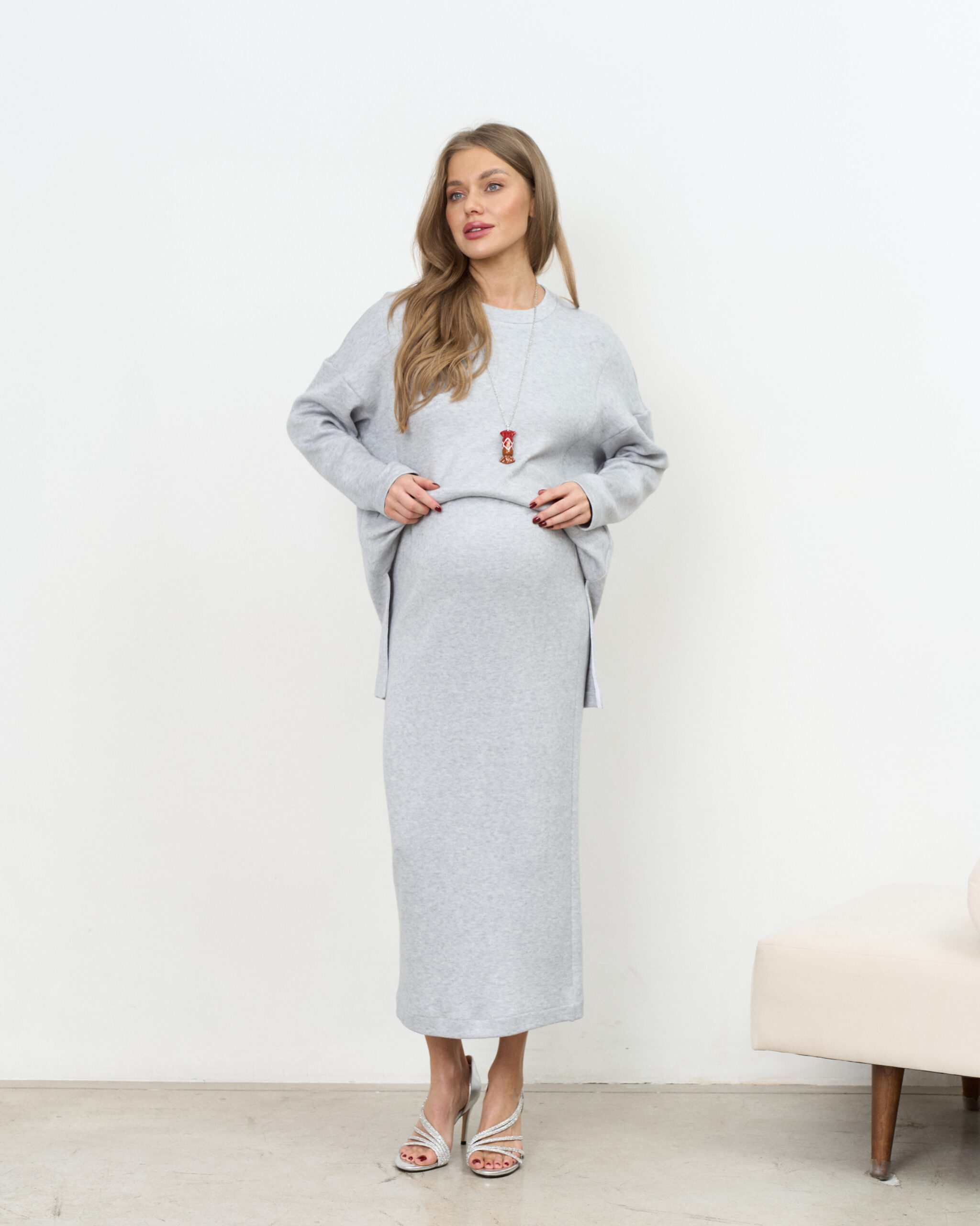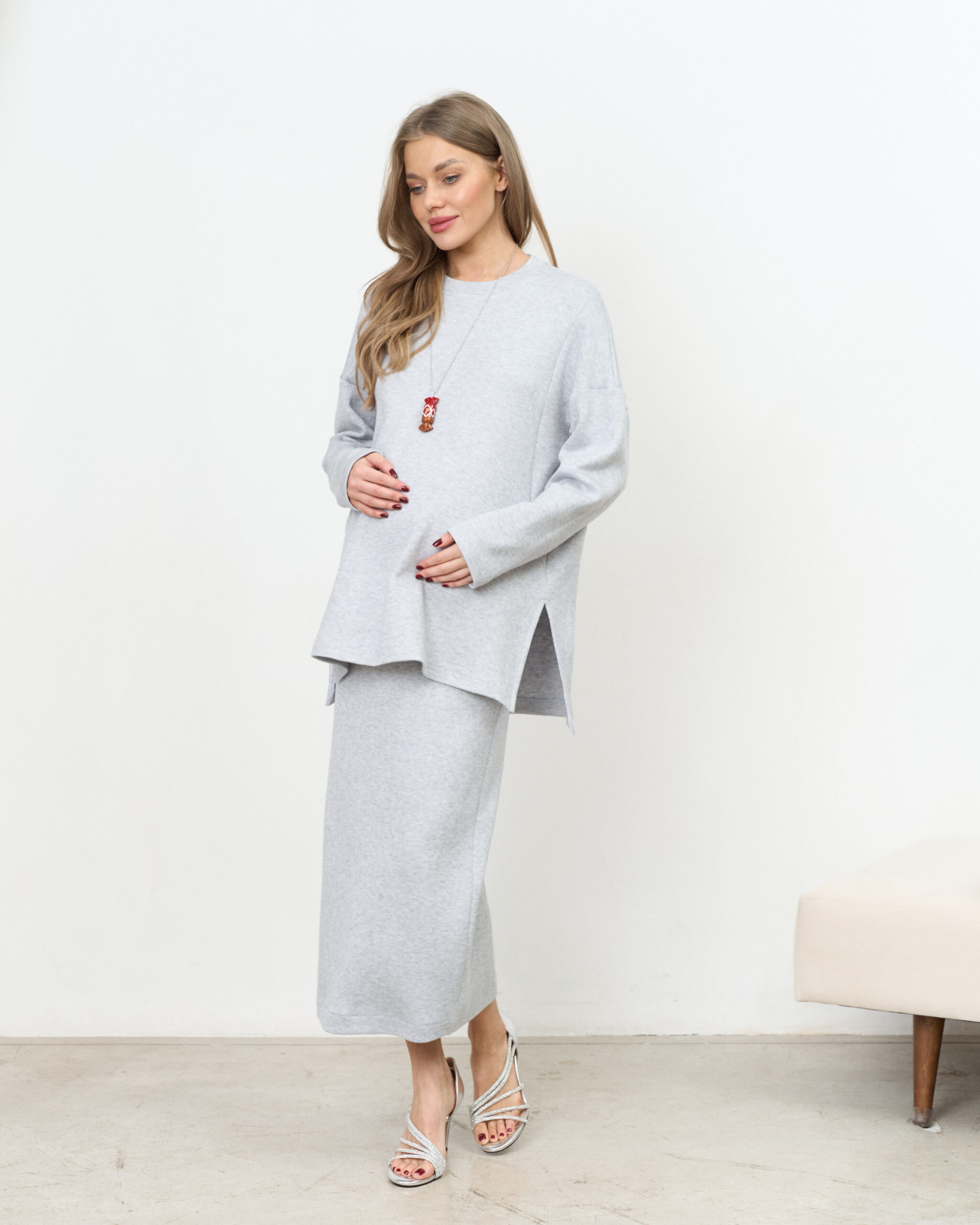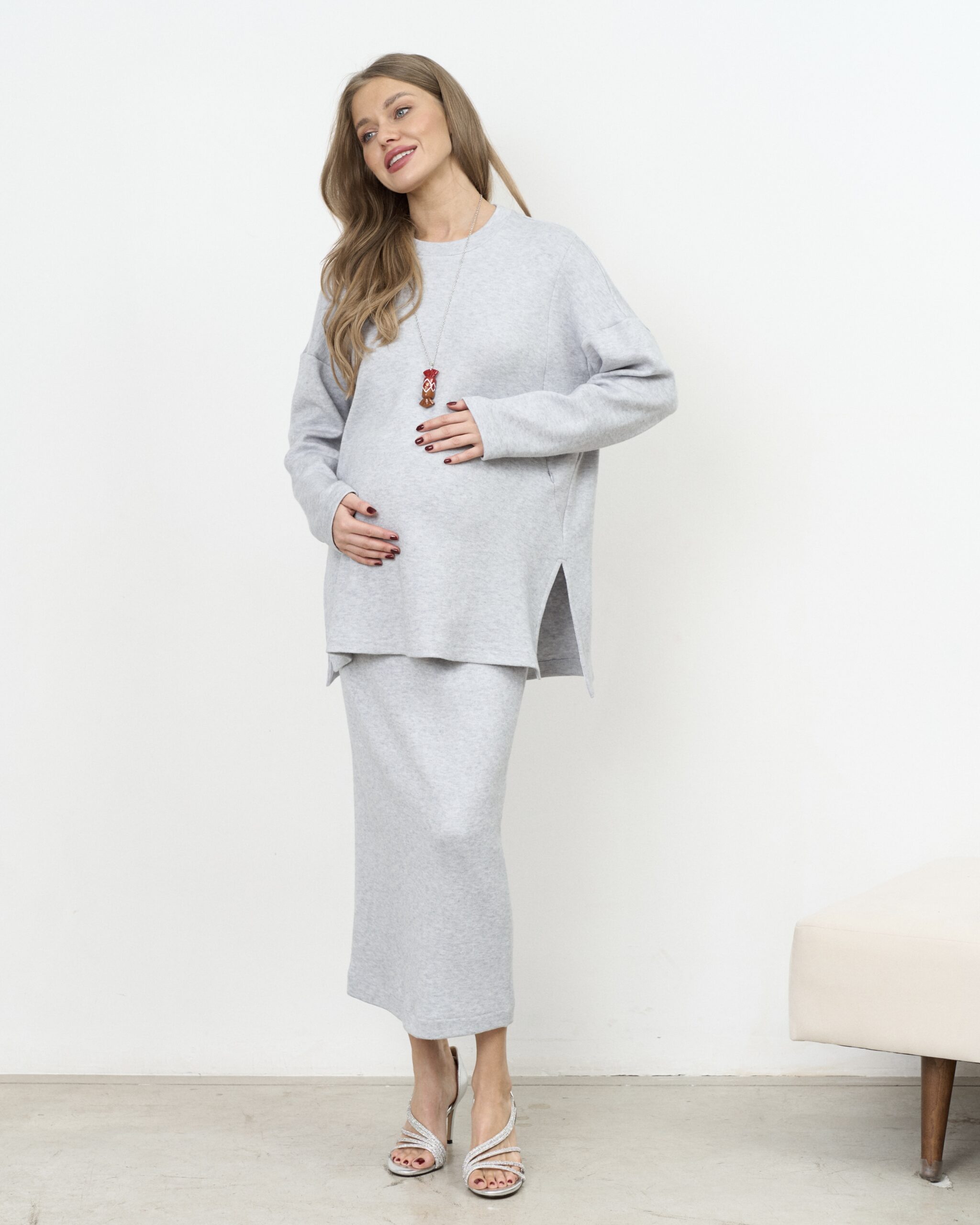 Теплая трендовая юбка-карандаш для беременных и кормящих мам из вязаного трикотажа. Она подчеркнёт вашу фигуру и подойдёт на любом сроке беременности и после. А теплая ткань подарит вам максимум комфорта от ежедневного использования. Подходит на рост до 163 см.