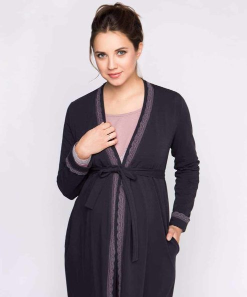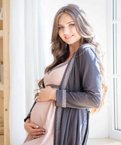Роскошный набор для будущих и кормящим мам (сорочка и халат) из хлопка высшего качества «пенье» для тех, кто предпочитает элегантный стиль дома. — Удобная конструкция лифа позволяет носить сорочку без бюстгальтера. — Специальные сборочки под грудью идеально лежать на беременном животике и обеспечивают комфорт и удобство. — Для быстрого и комфортного кормления грудью бретели имеют застежки Baby Quick Clip. — После завершения периода беременности и грудного вскармливания сорочку можно носить в качестве обычной ночной рубашки.
