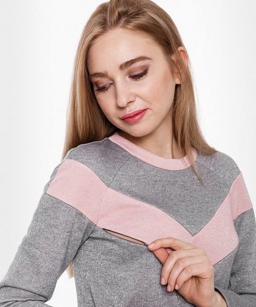 Стильное повседневное платье для беременных и кормящих из трикотажа трехнитка с люрексом. Контрастная вставка на груди и плечах превращает базовое платье в ультра-модную модель. Потайные молнии замаскированы в нагрудном рельефе. В этом платье вы всегда будете в тренде и вам будет тепло и удобно. Создавайте себе праздник каждый день!