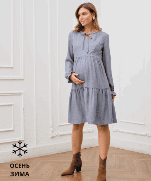 Стильное платье для беременных и кормящих из теплой ткани с шерстью.