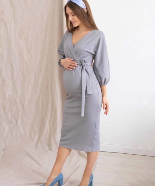 Это стильное платье с имитацией запАха и объемными рукавами сделает свою обладательницу неотразимой на любом событии. Платье можно носить на любом сроке беременности и после. Для кормления малыша вшиты потайные молнии. В комплекте пояс.