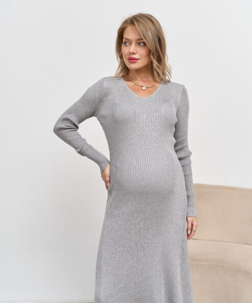 Трендовое платье-макси из теплого трикотажа. В нем вы будете выглядеть эффектно и стильно, а высокая эластичность материала позволит носить это платье на протяжении всего периода беременности и после нее. Без секретов для кормления.