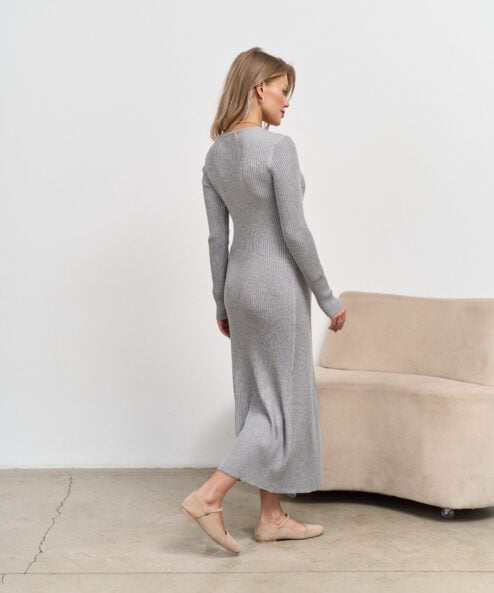 Серое платье из трикотажа в рубчик Riana