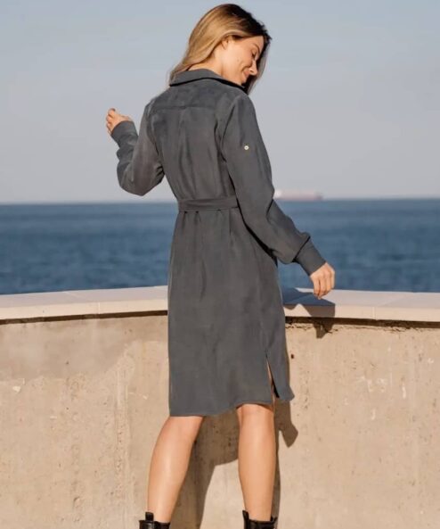Демократичный и комфортный фасон платья для беременных, в котором в равной степени присутствуют нотки деловой строгости, легкой нежности, ненавязчивости. Планка на пуговицах по всей длине позволяет регулировать величину выреза. Модель дополнена съемным тканевым поясом, который подчеркнет округлившийся животик будущей мамы. Присутствует секрет для кормления малыша, которых замаскирован в шве на груди.