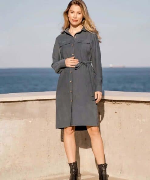 Кофейное платье-рубашка для будущих и кормящих мам Moby