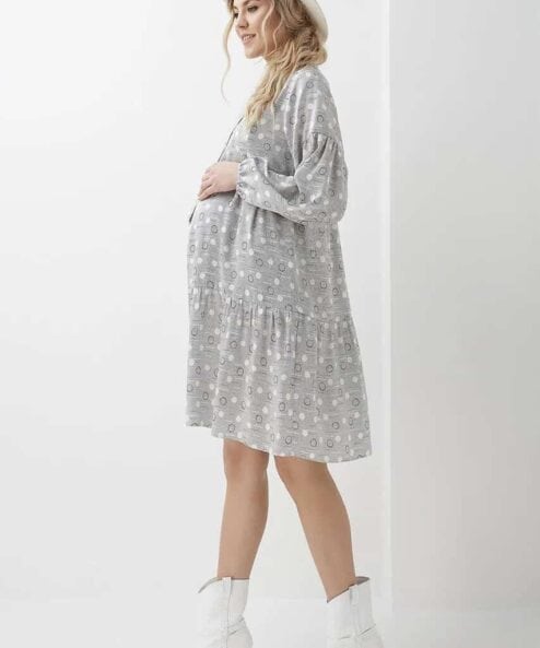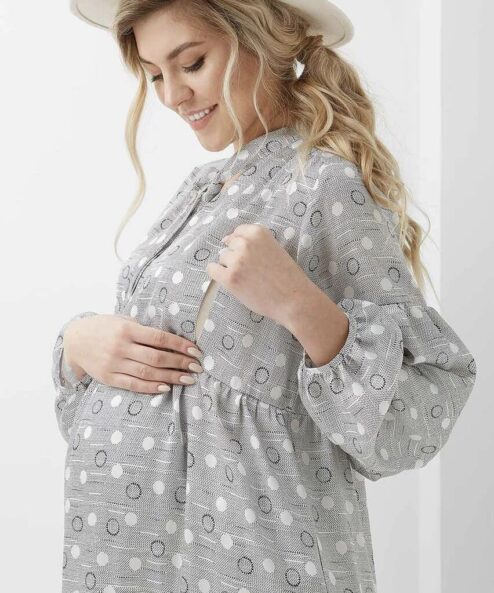 Серое платье с бантом для будущих и кормящих мам Georgia