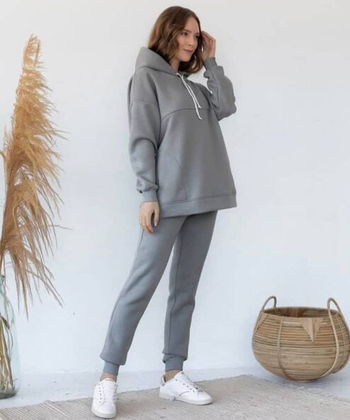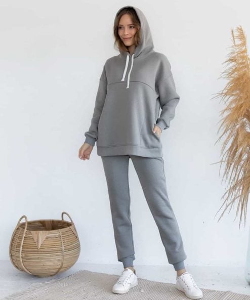 Худи кроя oversize из плотного хлопкового трикотажа с начесом, которое подойдет на весь период беременности и после. Особенности модели: горизонтальная двухсторонняя молния для кормления малыша, удобные карманы в боковых швах, шнурки для регулировки объема капюшона. В комплект можно приобрести брюки Pandora.
