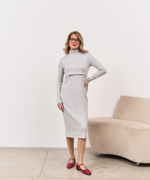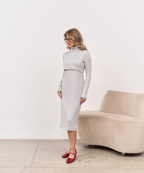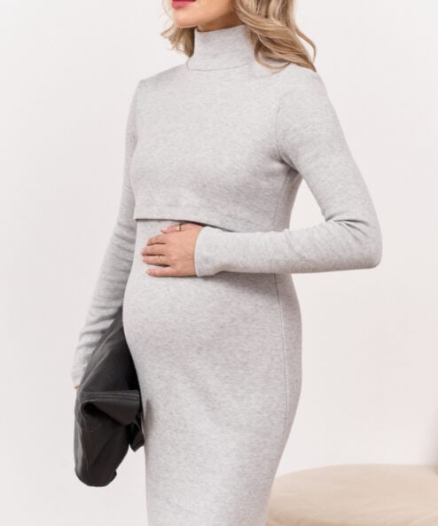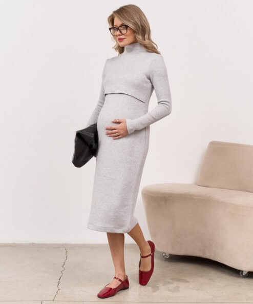 Платье полуприлегающего кроя c высоким горлышком для беременных и кормящих мам. Платье выполнено в комфортной длине миди и скроено специально для растущего животика. Секрет для грудного кормления в виде двойной полочки позволит незаметно покормить малыша. А теплая ткань подарит вам максимум комфорта от ежедневного использования.