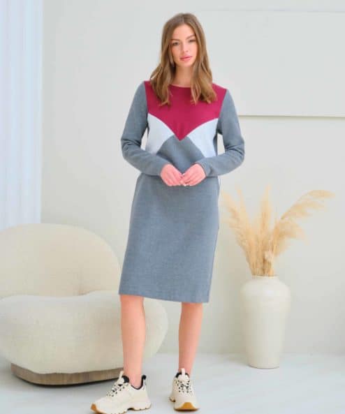 Теплое платье для беременных и кормящих в стиле color-block из трикотажа с начесом.
