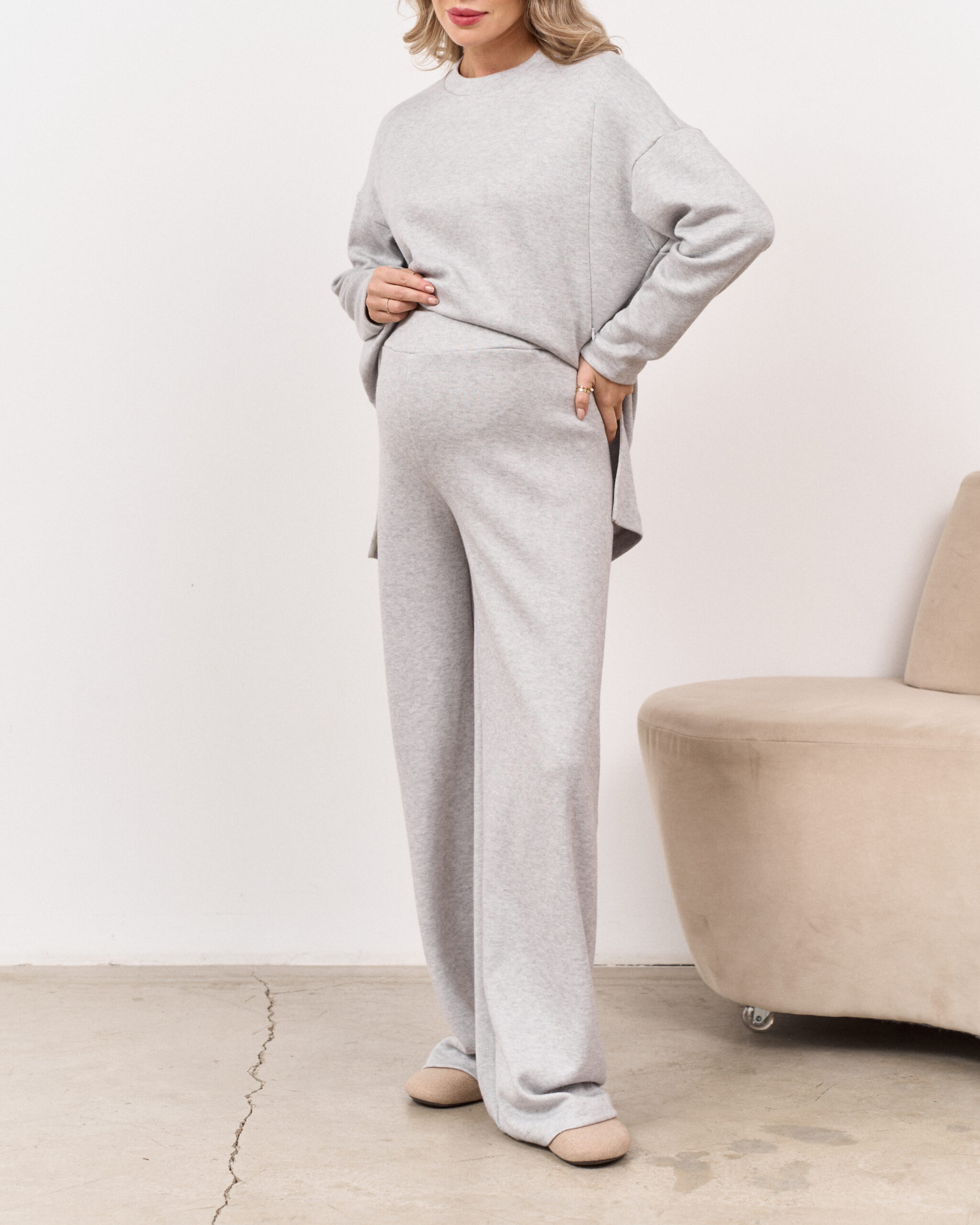Серые теплые брюки для будущих и кормящих мам Trendy