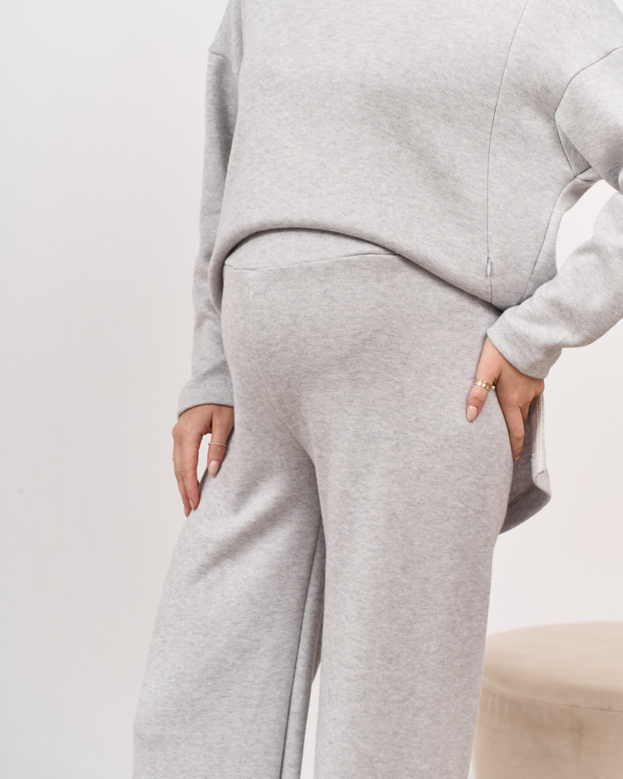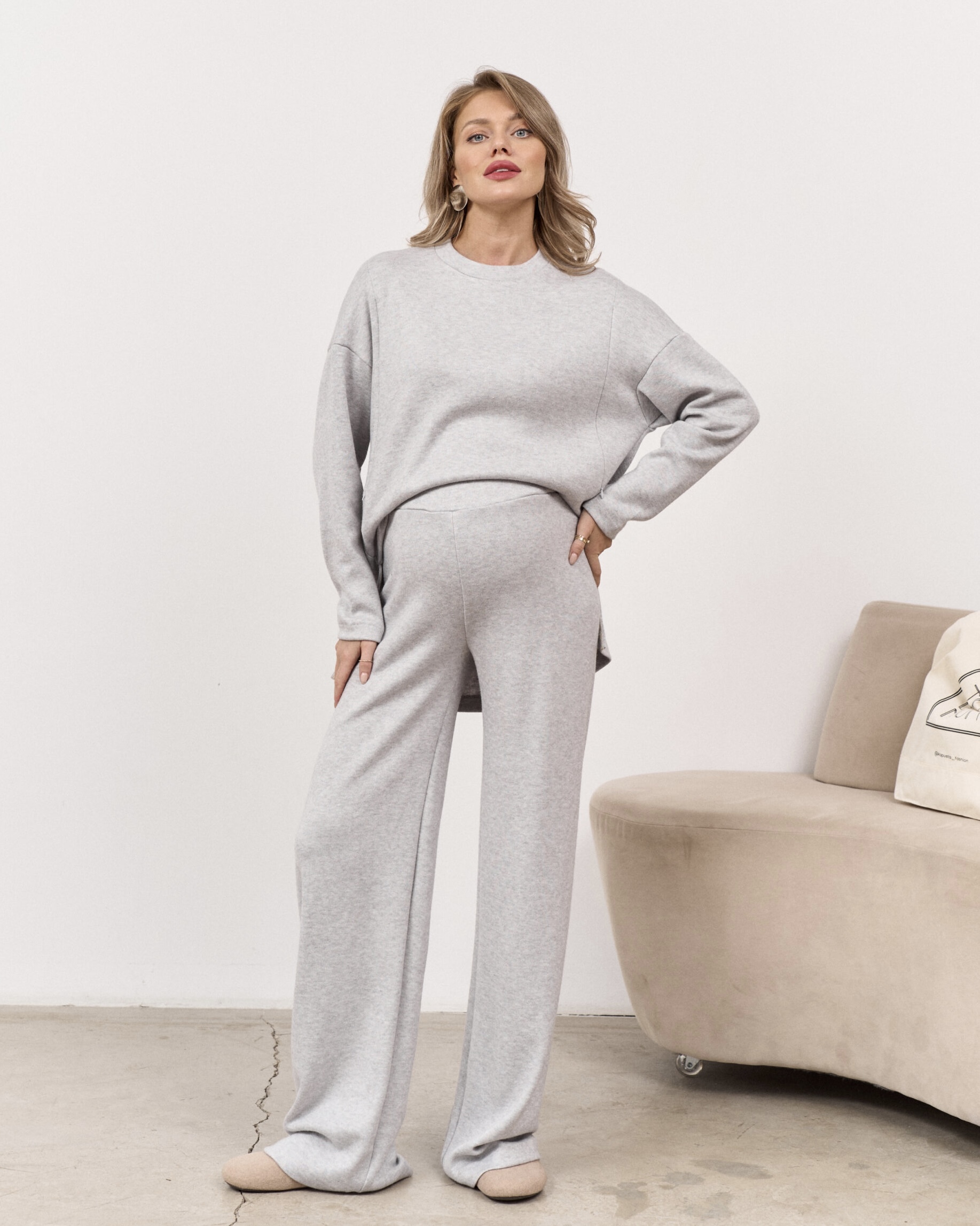 Теплые трендовые брюки для беременных мам из вязаного трикотажа. Они подчеркнёт вашу фигуру и подойдут на любом сроке беременности и после. А теплая ткань подарит вам максимум комфорта от ежедневного использования.