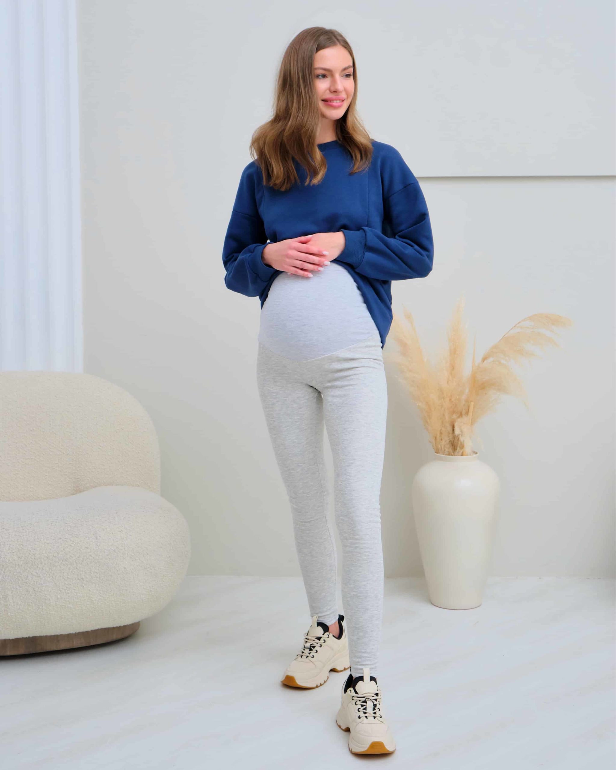 Серые теплые леггинсы для беременных Berta