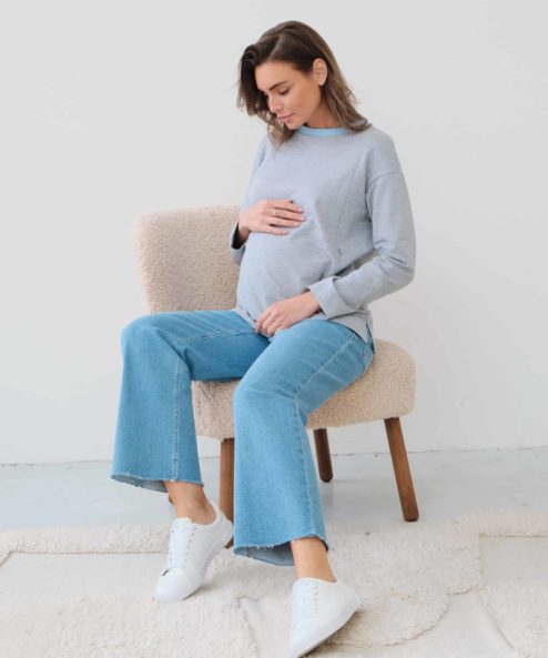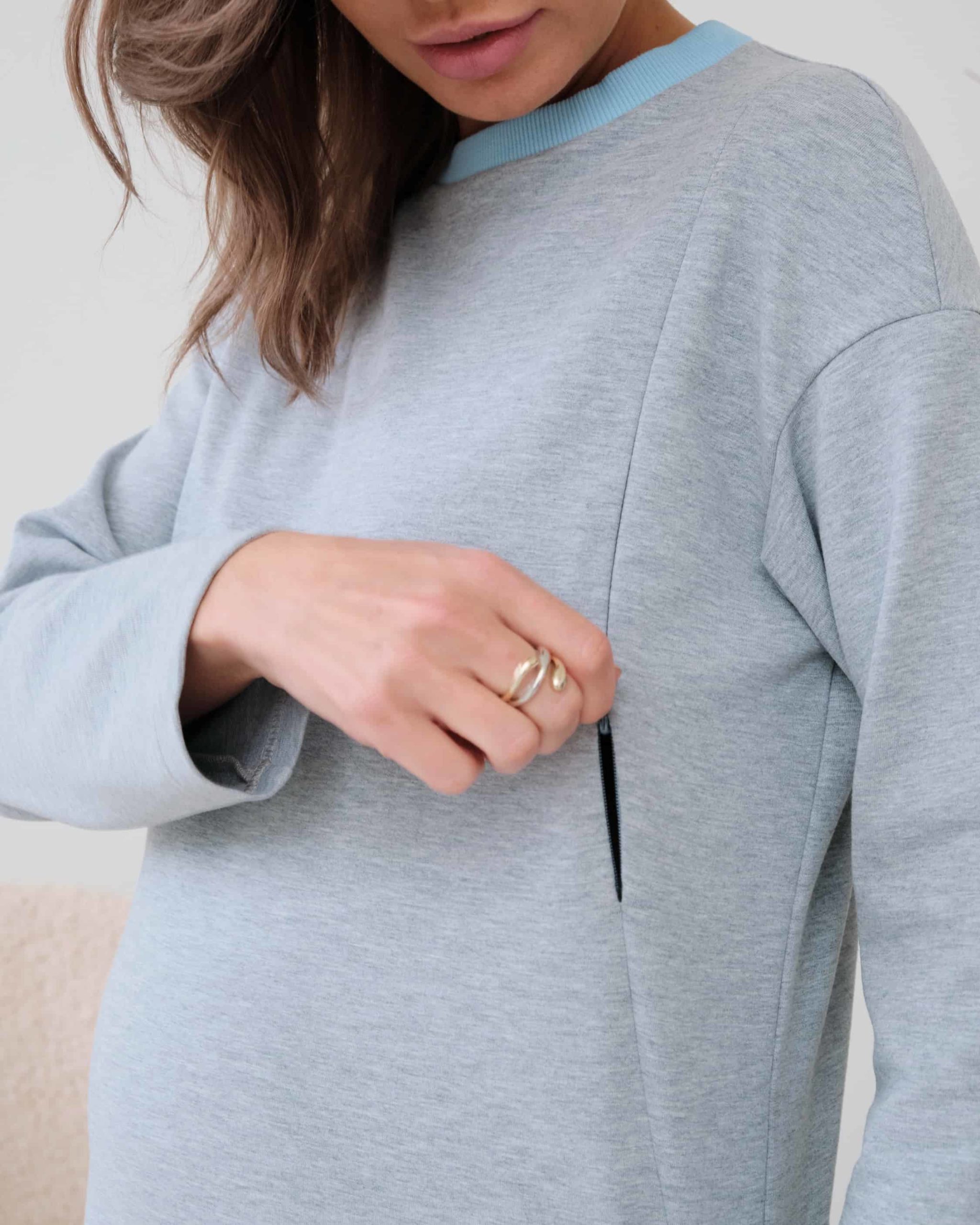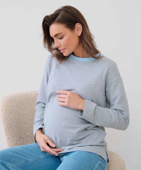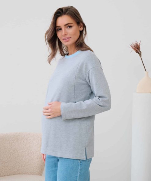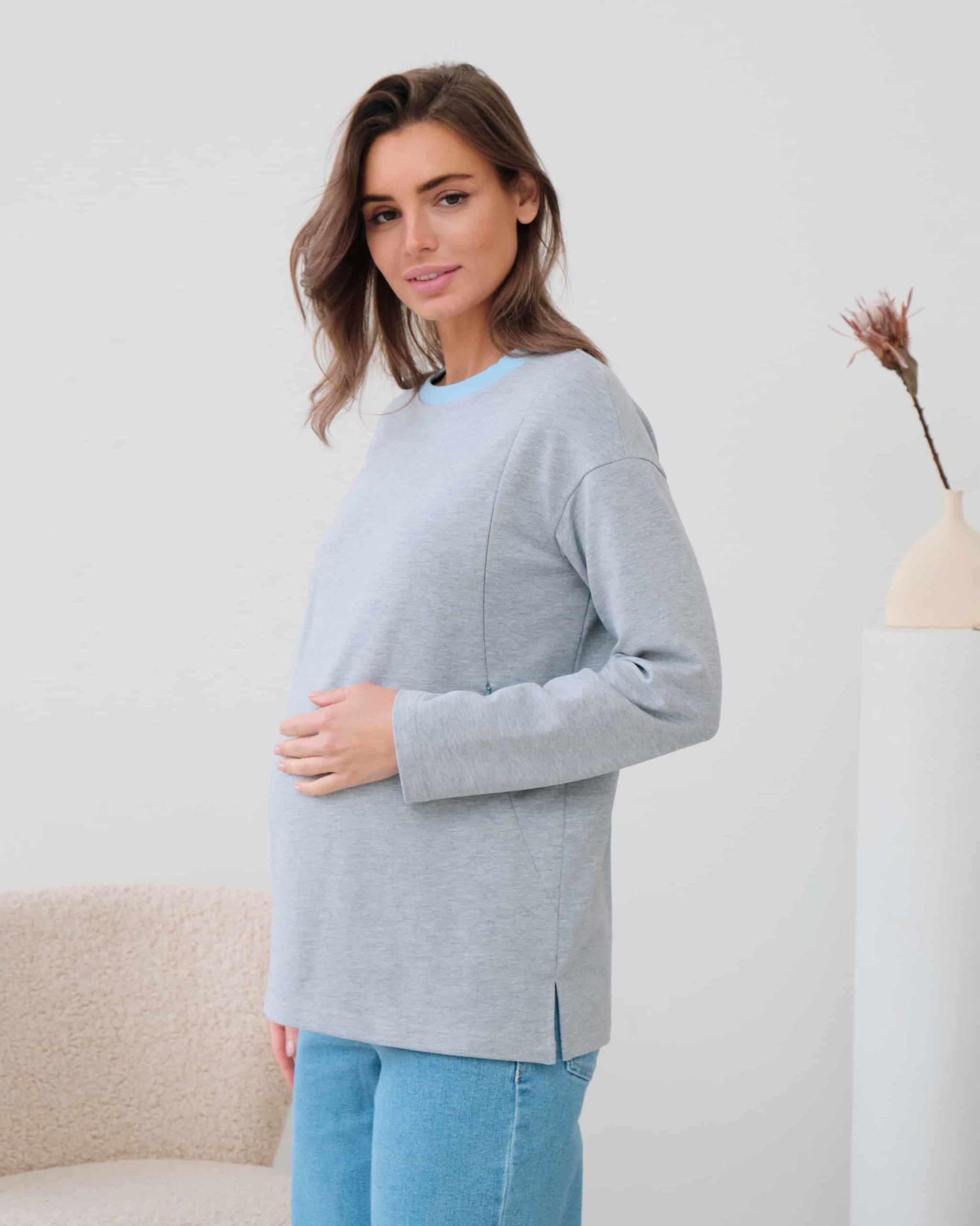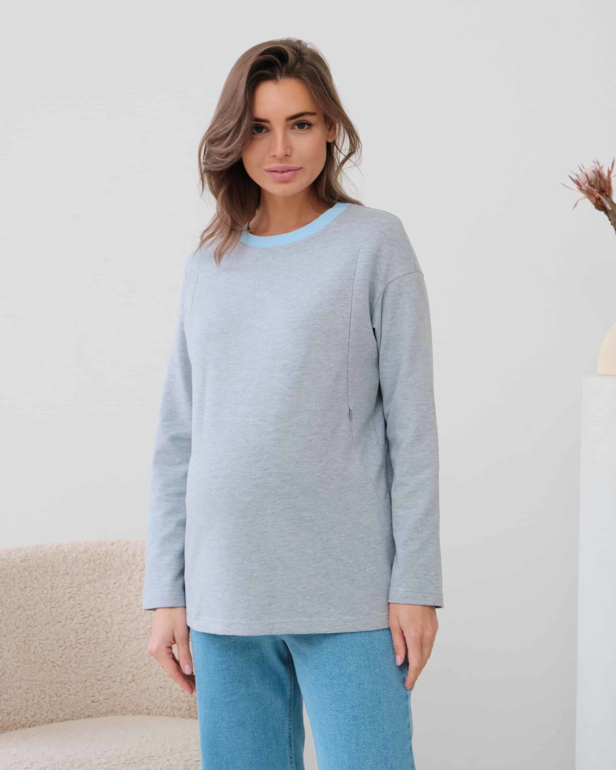 Серый лонгслив для беременных и кормящих мам Odri