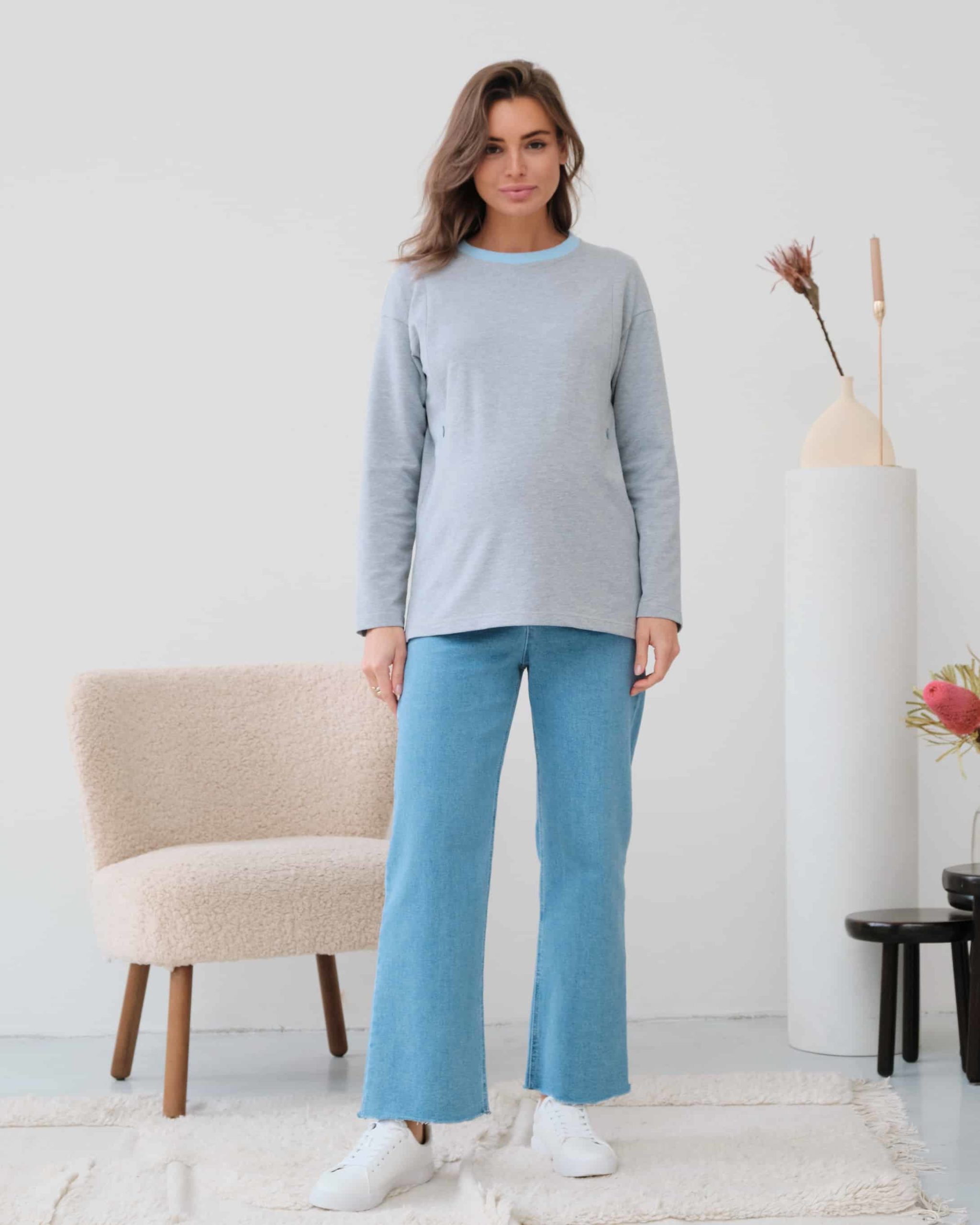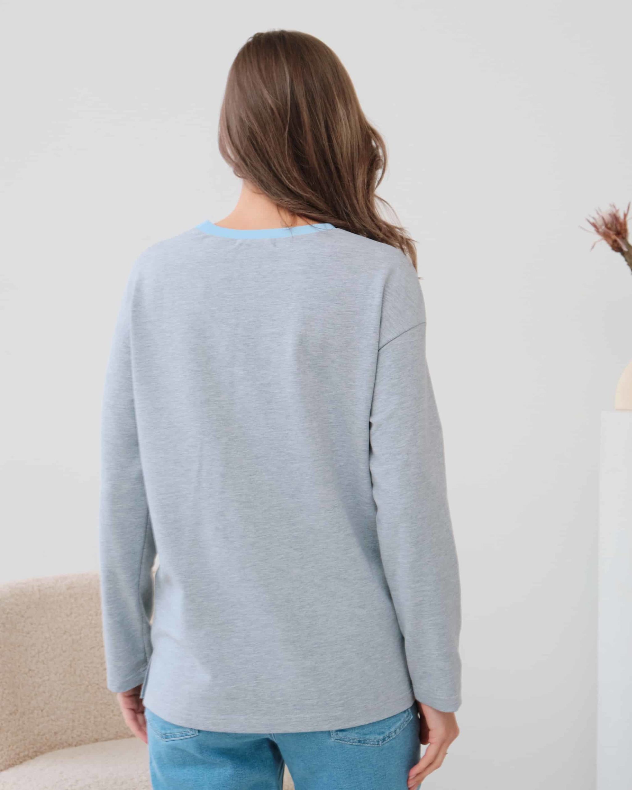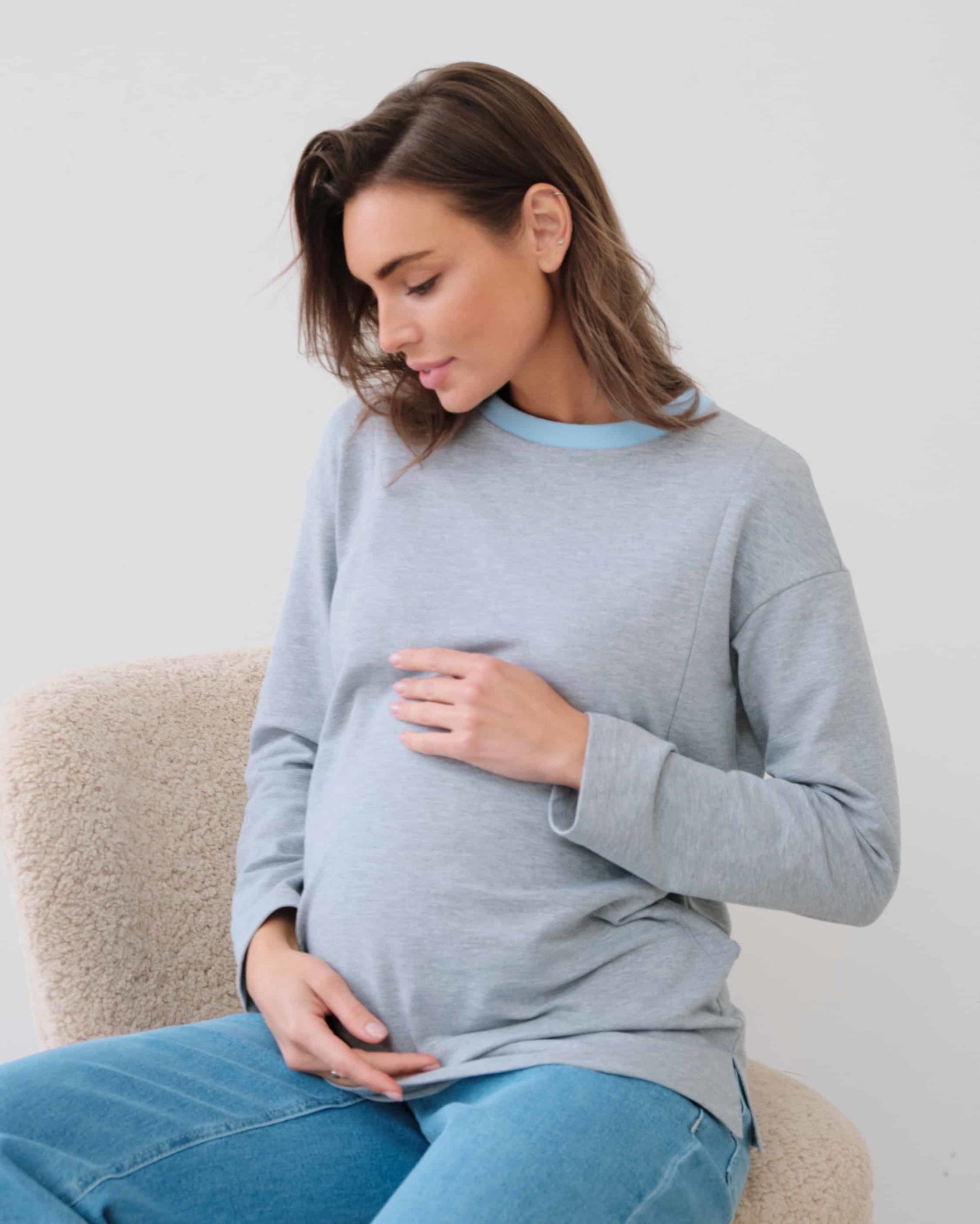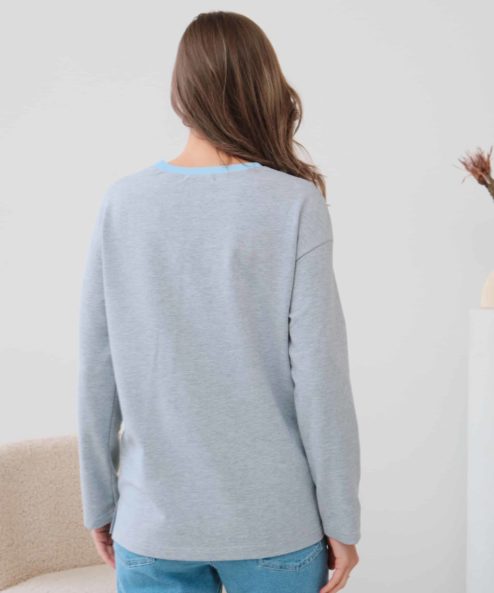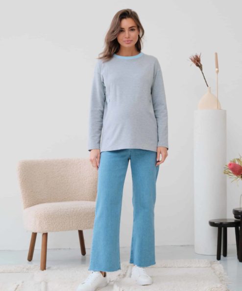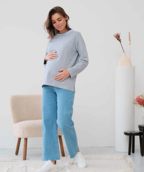 Серый лонгслив для беременных и кормящих мам Odri
