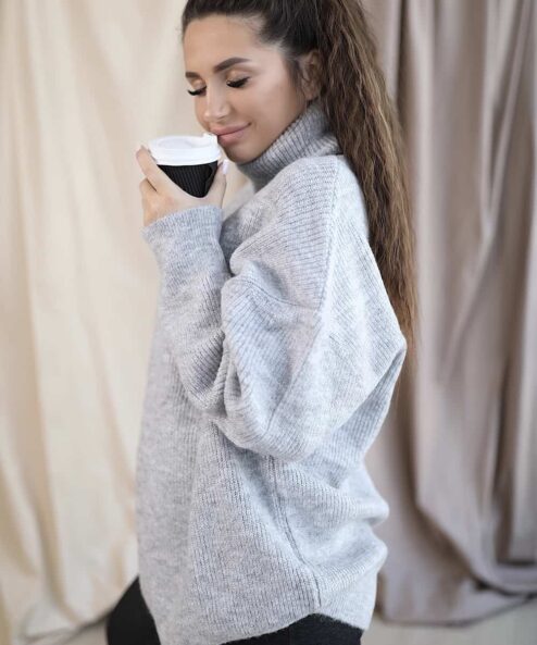 Этот мягкий и теплый свитер-оверсайз подойдет на весь период беременности и после. Он согреет вас в холодное время года и позволит создать модные образы. Без молний для кормления.