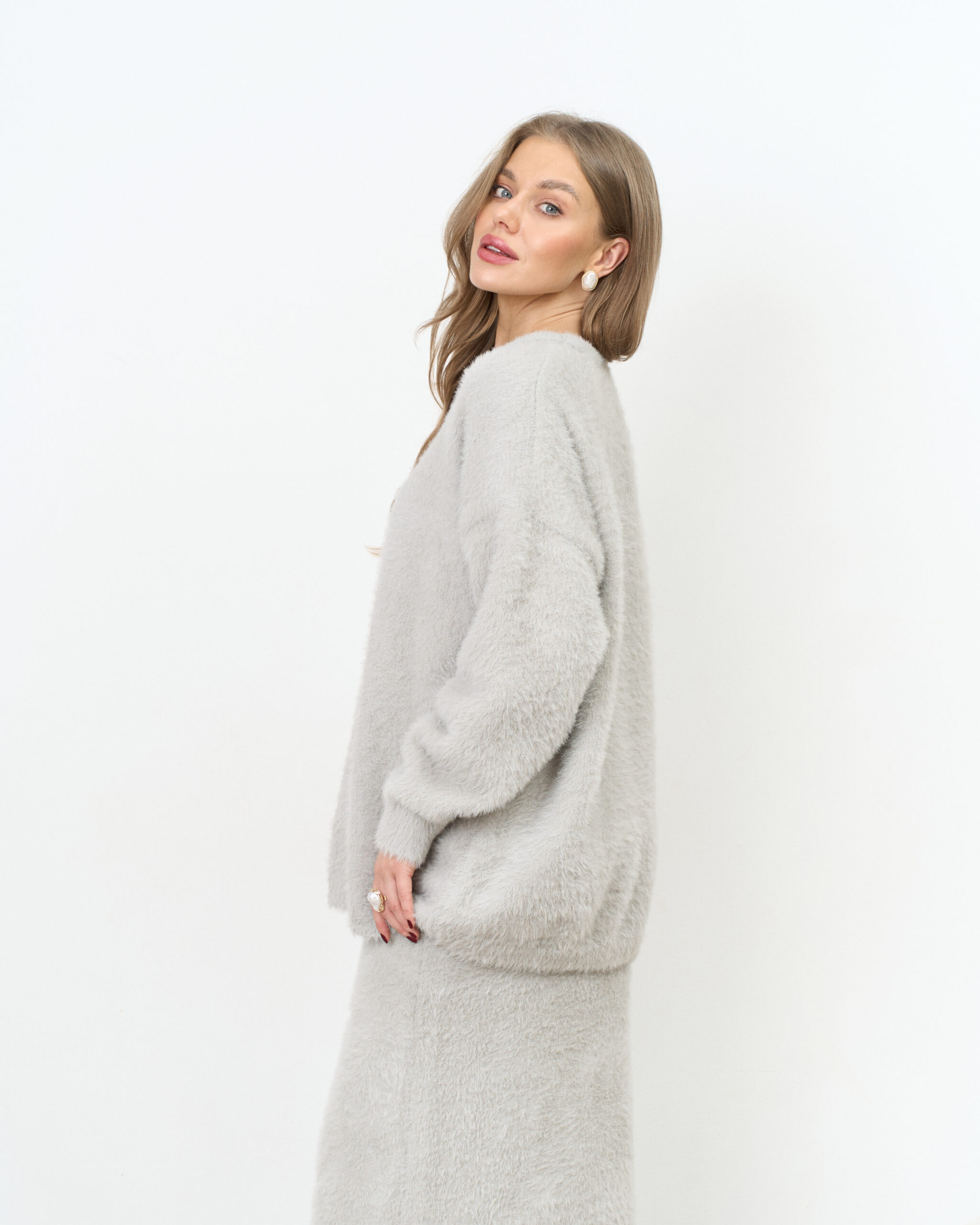 Серый трикотажный пушистый комплект Kirsten